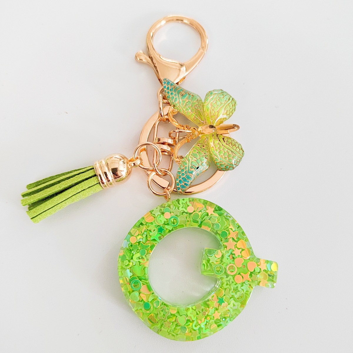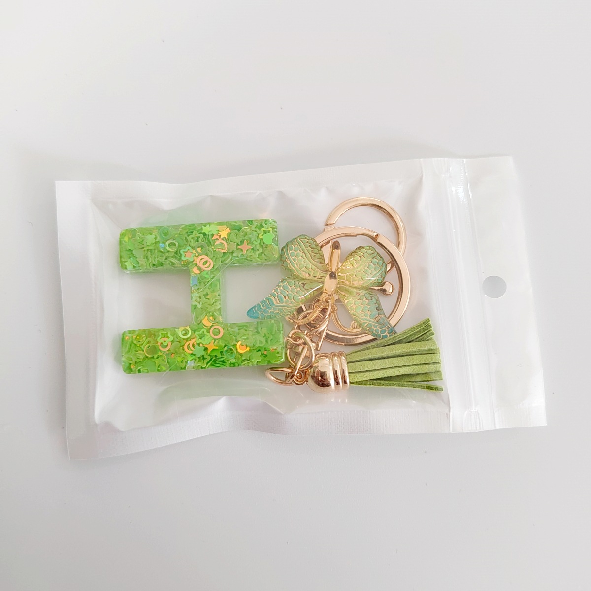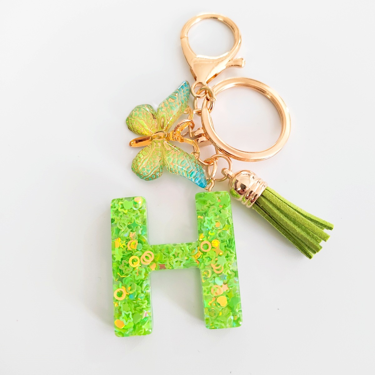 26 영어 알파벳 키 체인 펜던트 그린 스타 반짝이 수지 펜던트 유럽과 미국의 성격 키 체인스토어 가기