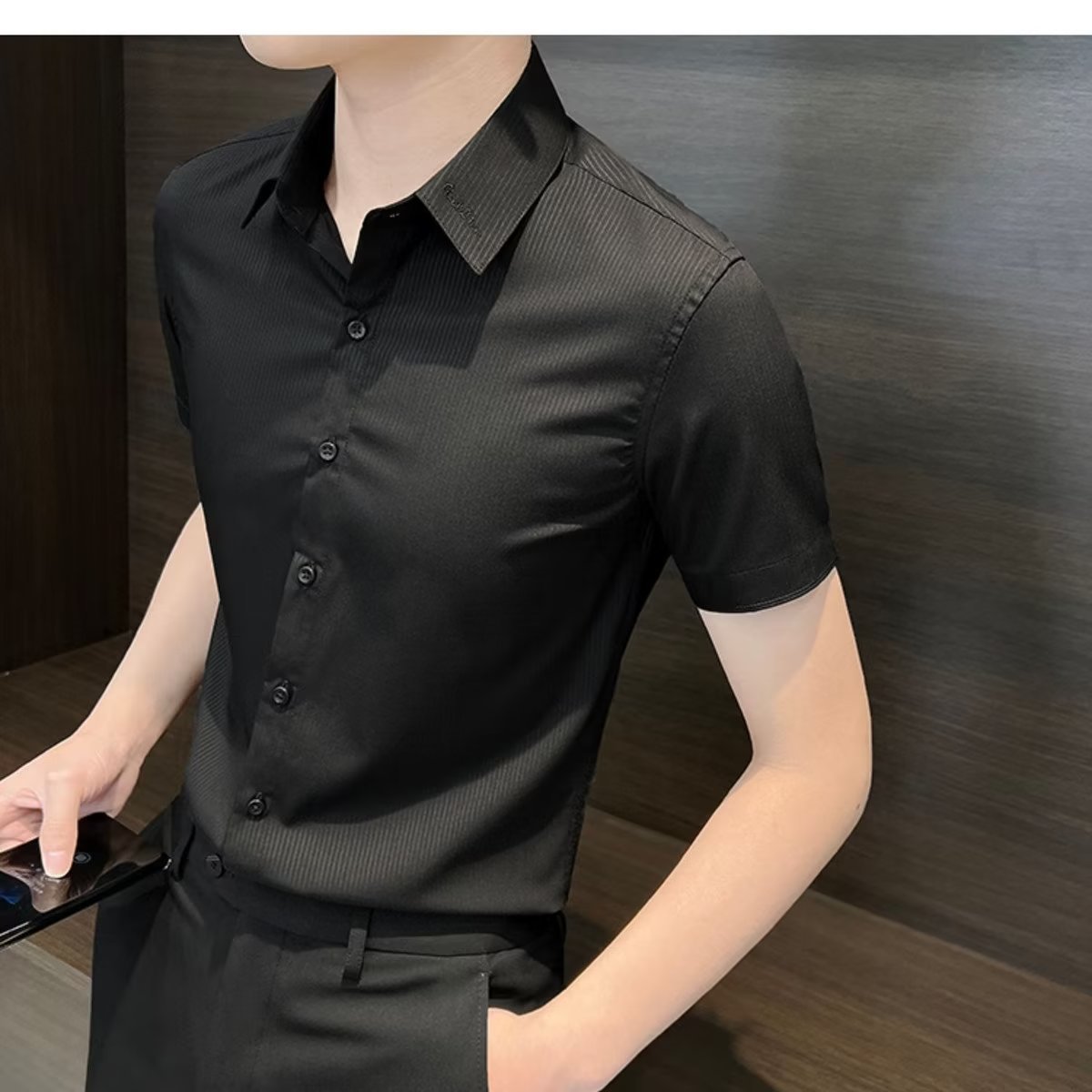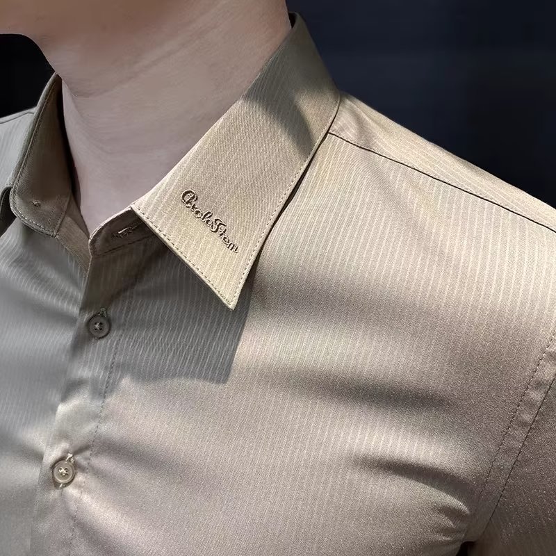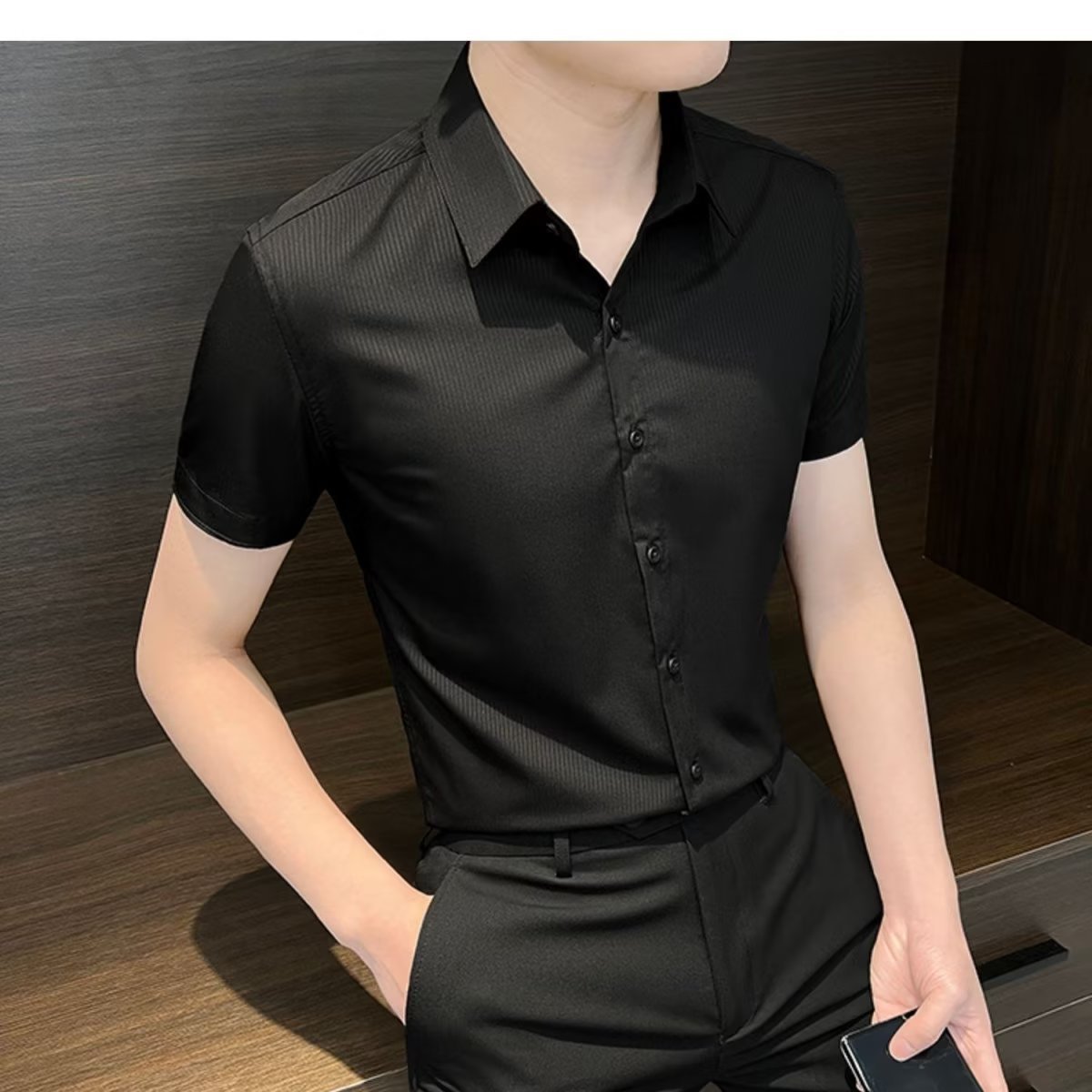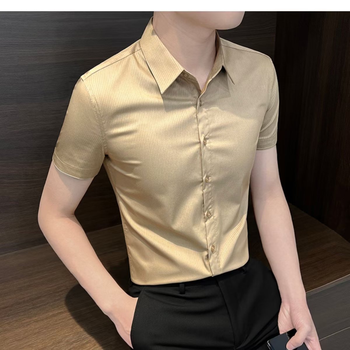 수직 스트라이프 남자 반팔 셔츠 여름 아이스 실크 2024 새로운 여름 비즈니스 하이 엔드 슬림 핏 하이 엔드 센스 셔츠스토어 가기