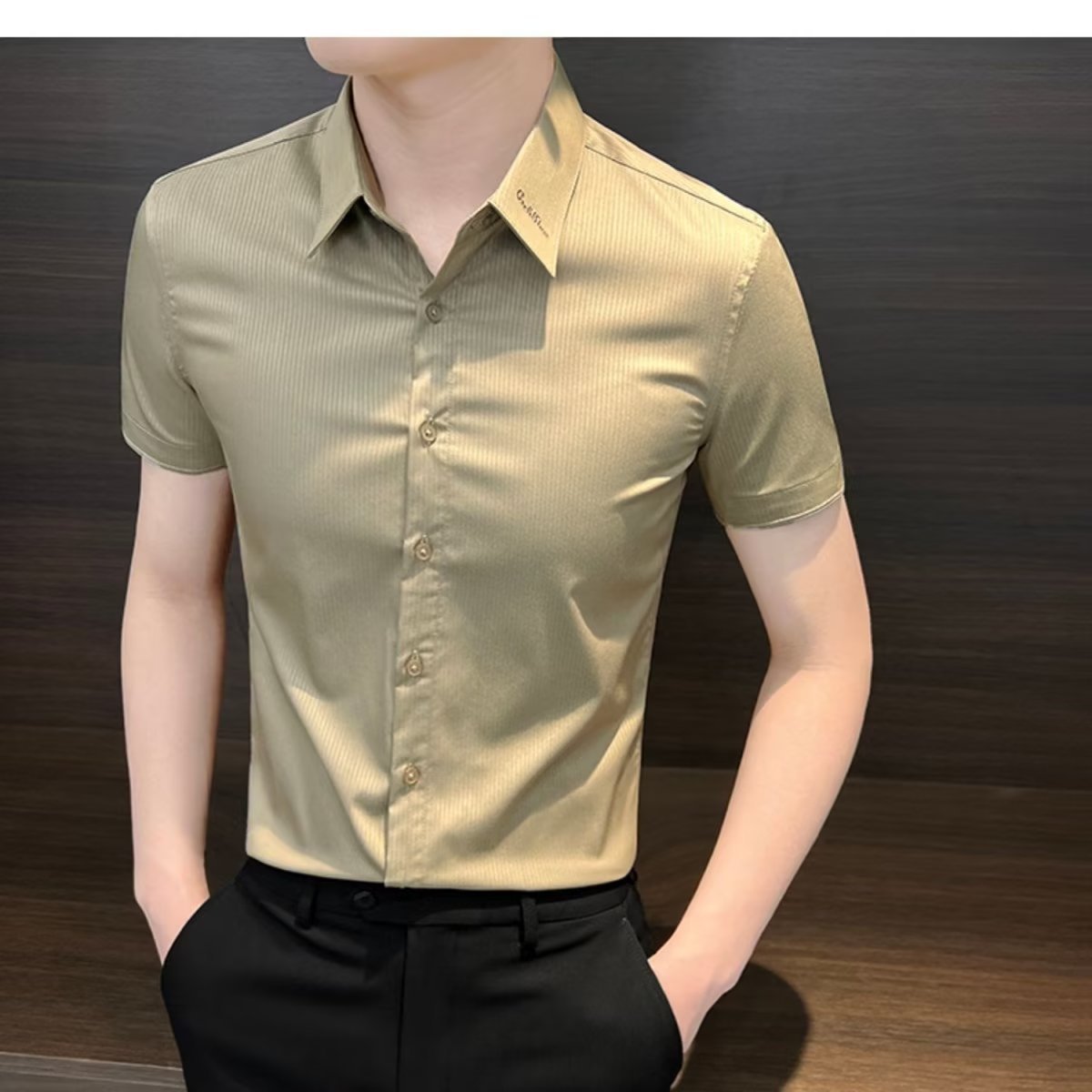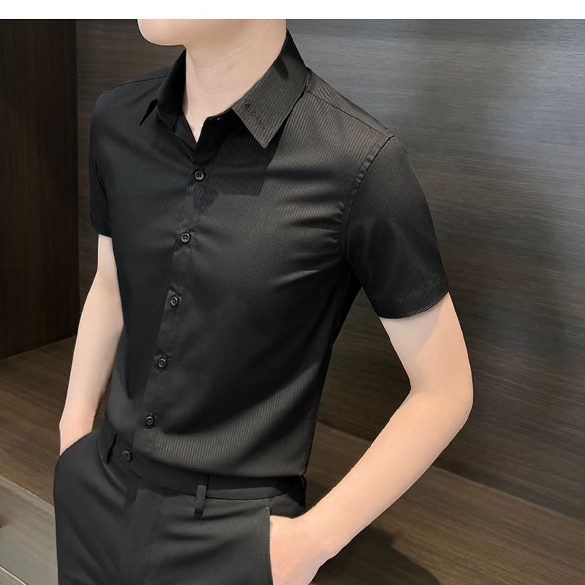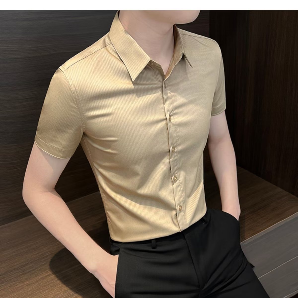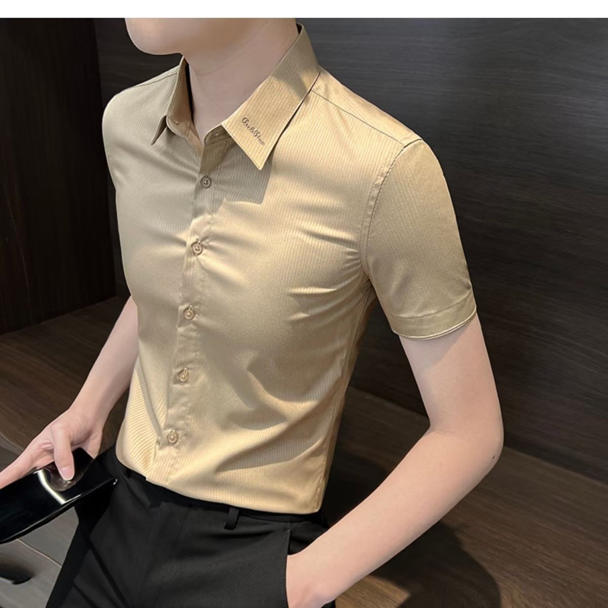 수직 스트라이프 남자 반팔 셔츠 여름 아이스 실크 2024 새로운 여름 비즈니스 하이 엔드 슬림 핏 하이 엔드 센스 셔츠스토어 가기