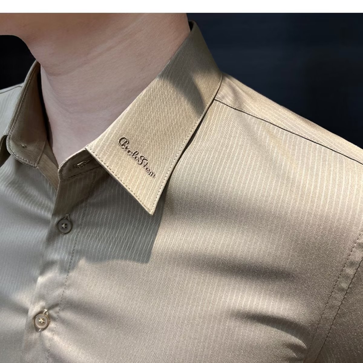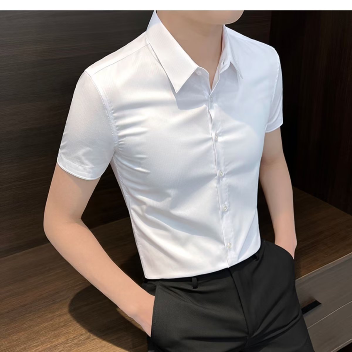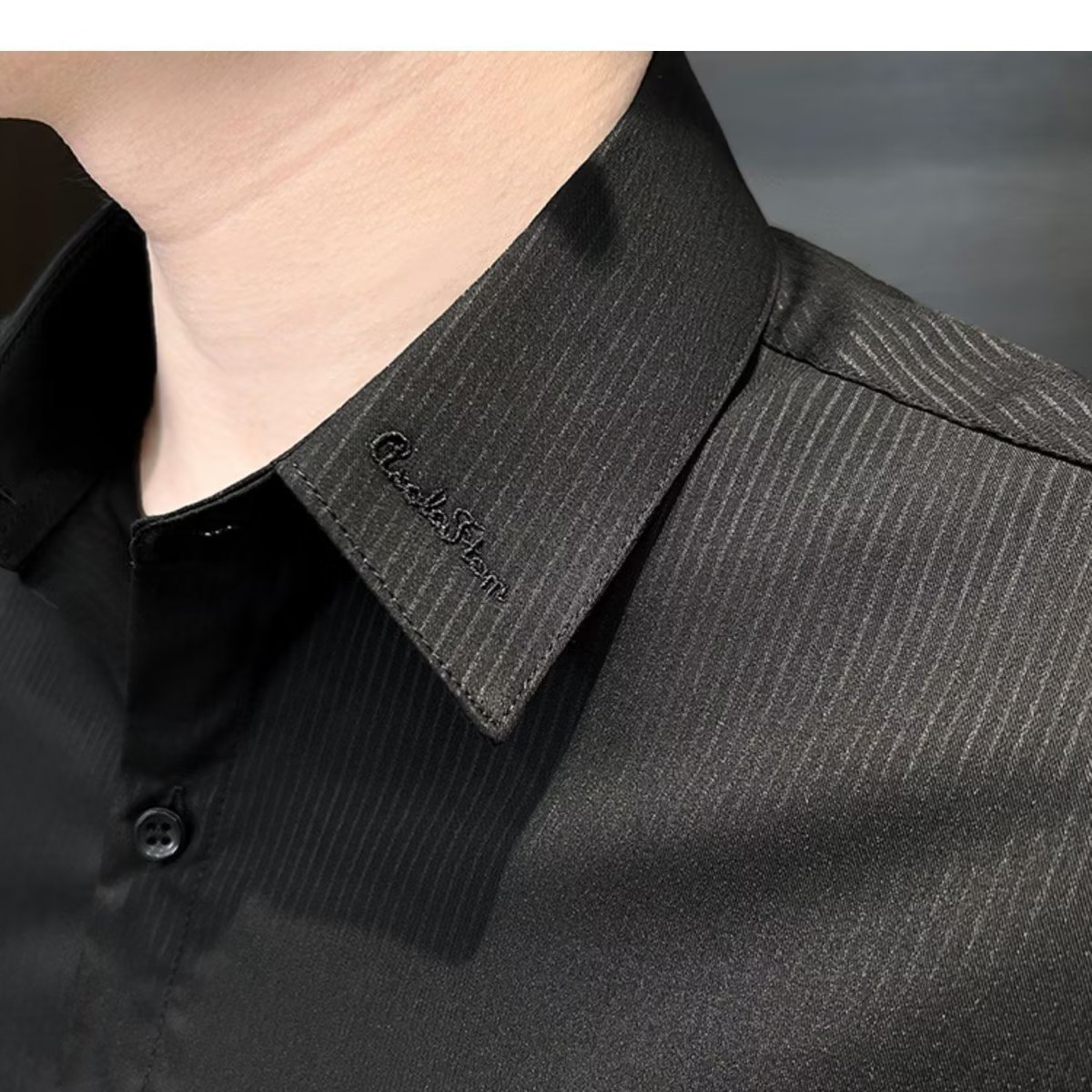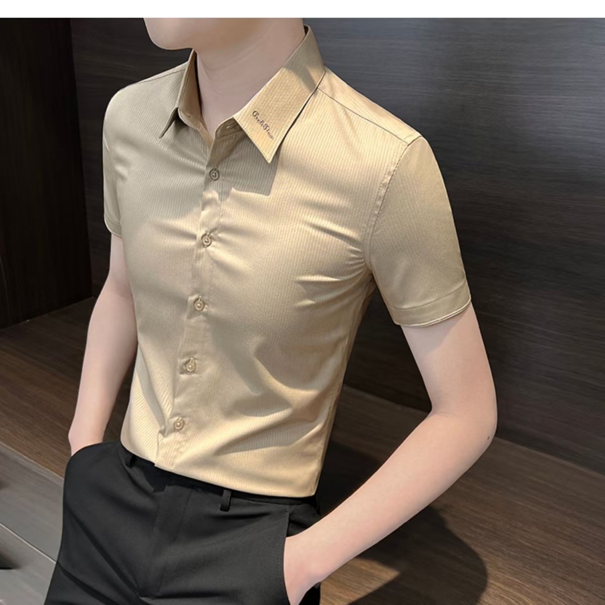 수직 스트라이프 남자 반팔 셔츠 여름 아이스 실크 2024 새로운 여름 비즈니스 하이 엔드 슬림 핏 하이 엔드 센스 셔츠스토어 가기