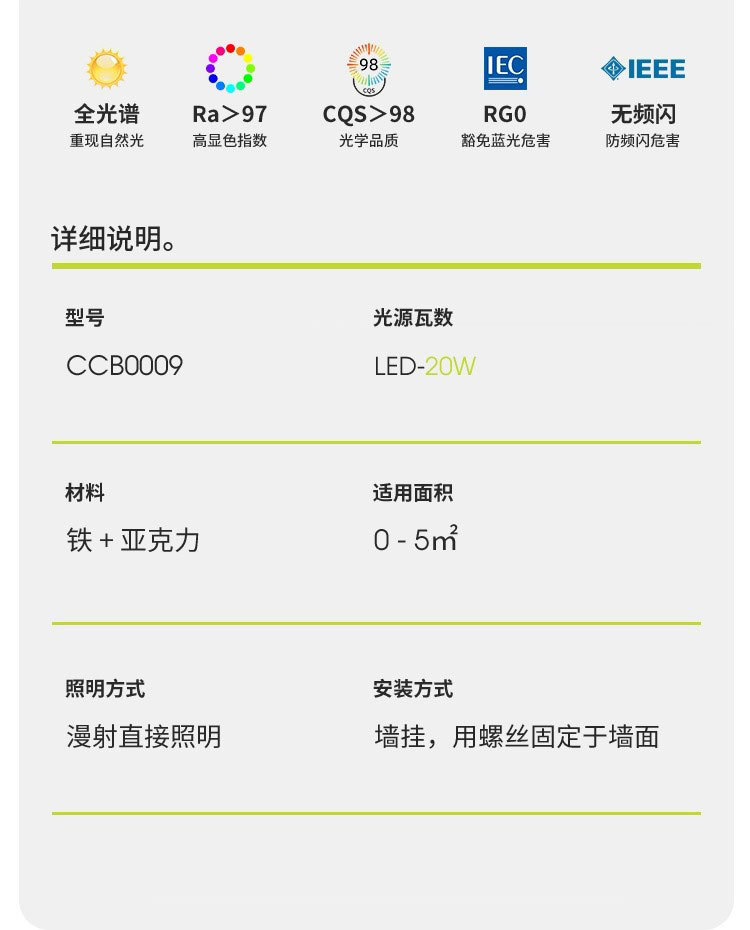 • 유백색 - 유선형 - 깜박임 없음 눈 보호 20와트