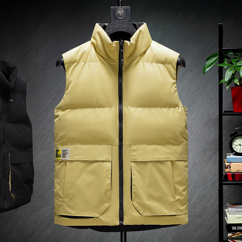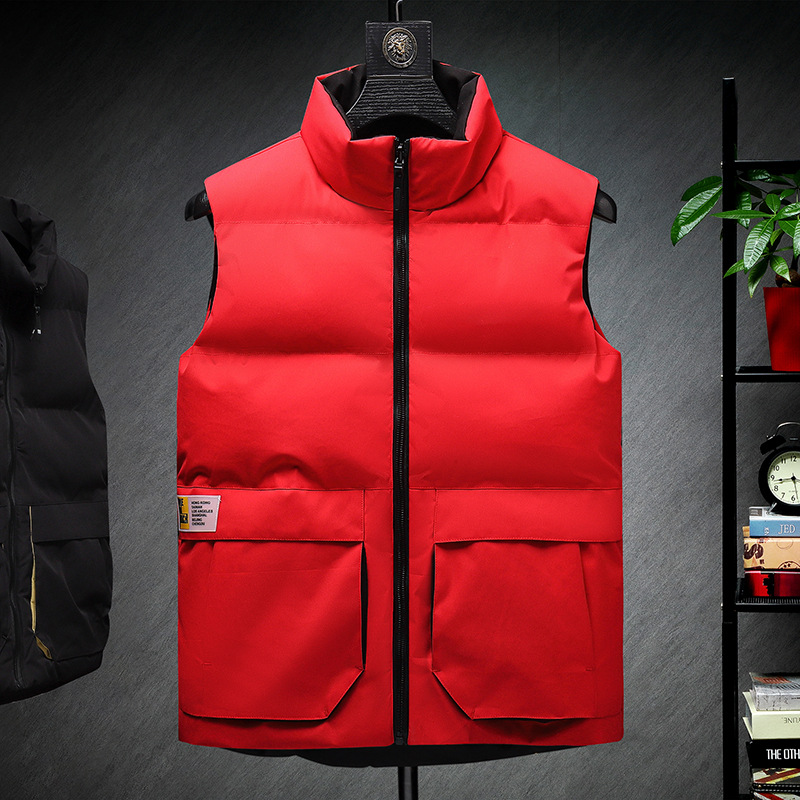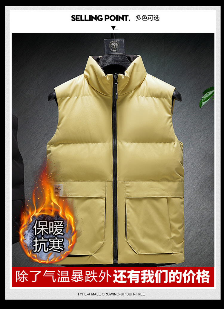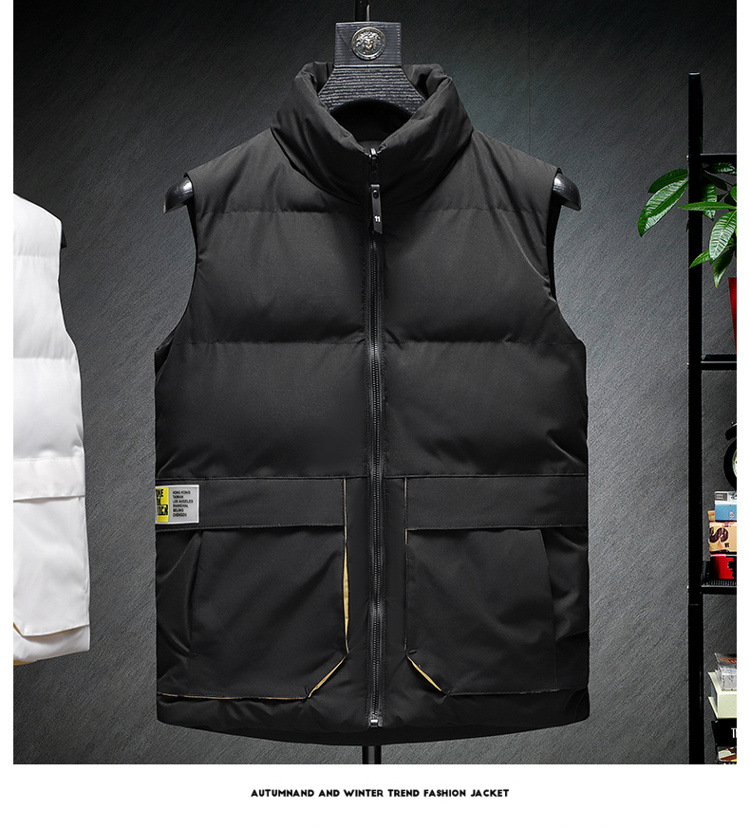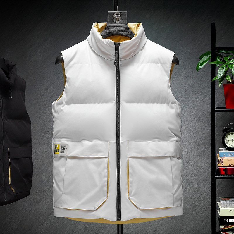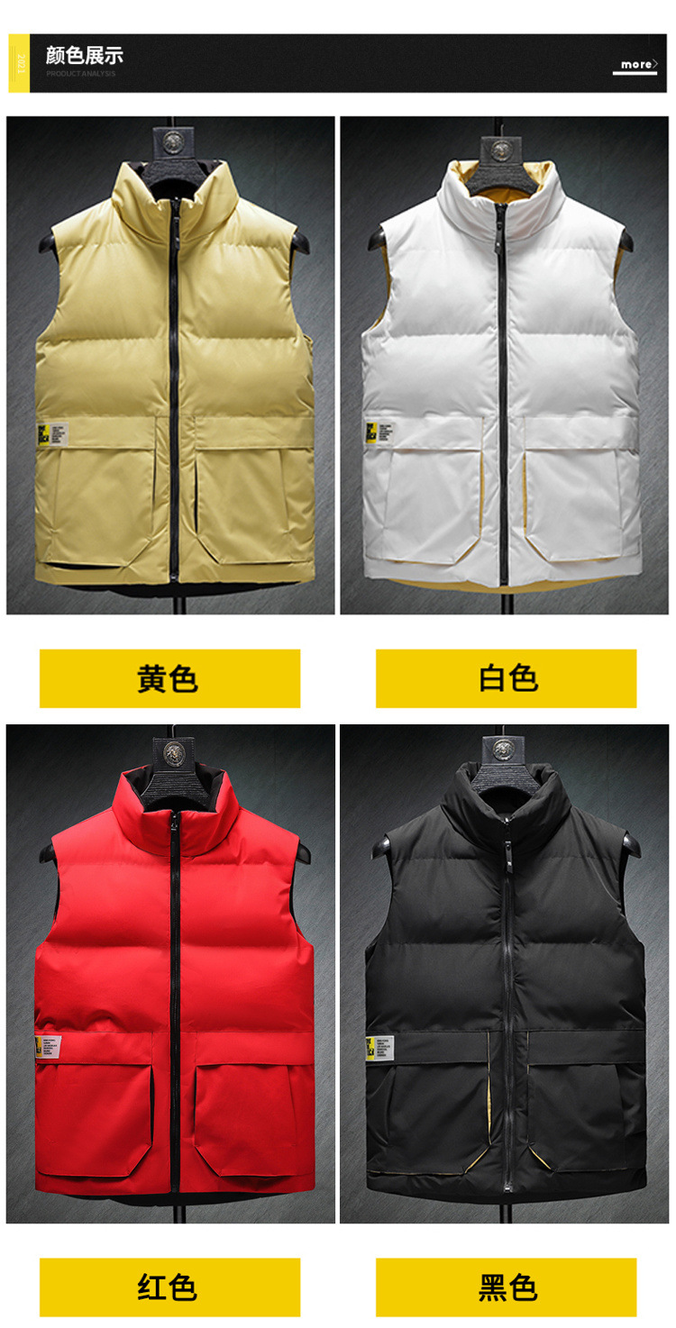 양면 2024 가을 겨울 칼라 솔리드 컬러 코튼 조끼 대형 남성 두꺼운 따뜻한 조끼 유행 남성 조끼스토어 가기