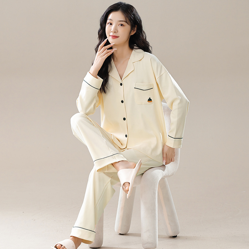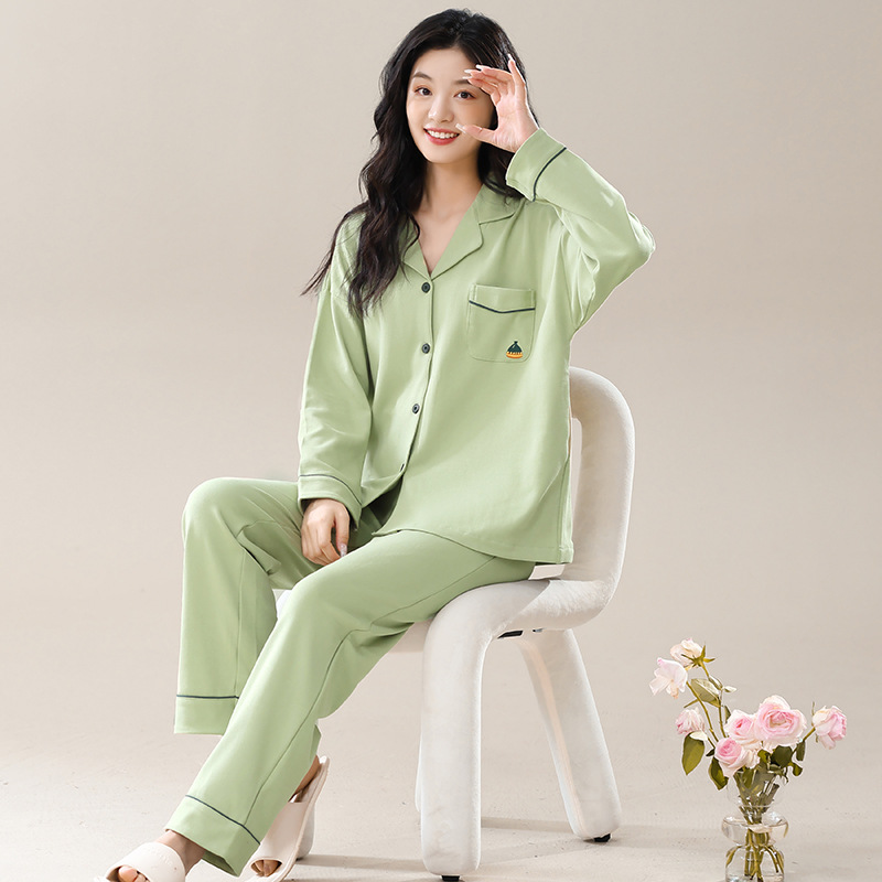 7A 항균 잠옷 여성의 봄과 가을 순면 긴 소매 인터넷 축하 귀여운 집 옷 2024 새로운 모든면 대형 세트스토어 가기