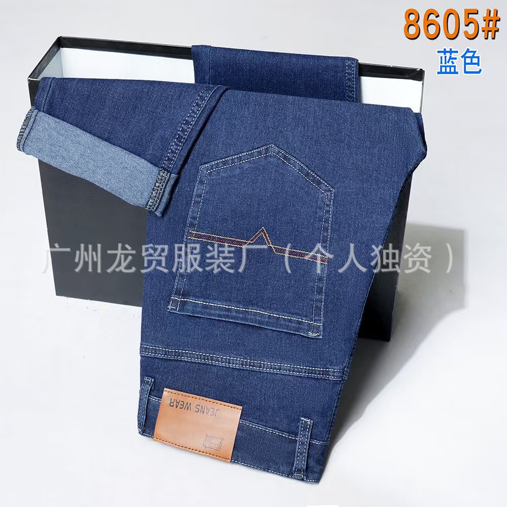 Longmao 남성 청바지 여름 새로운 스트레치 중년 데님 하이 웨이스트 스트레이트 루즈 공장 직접 판매 작업복