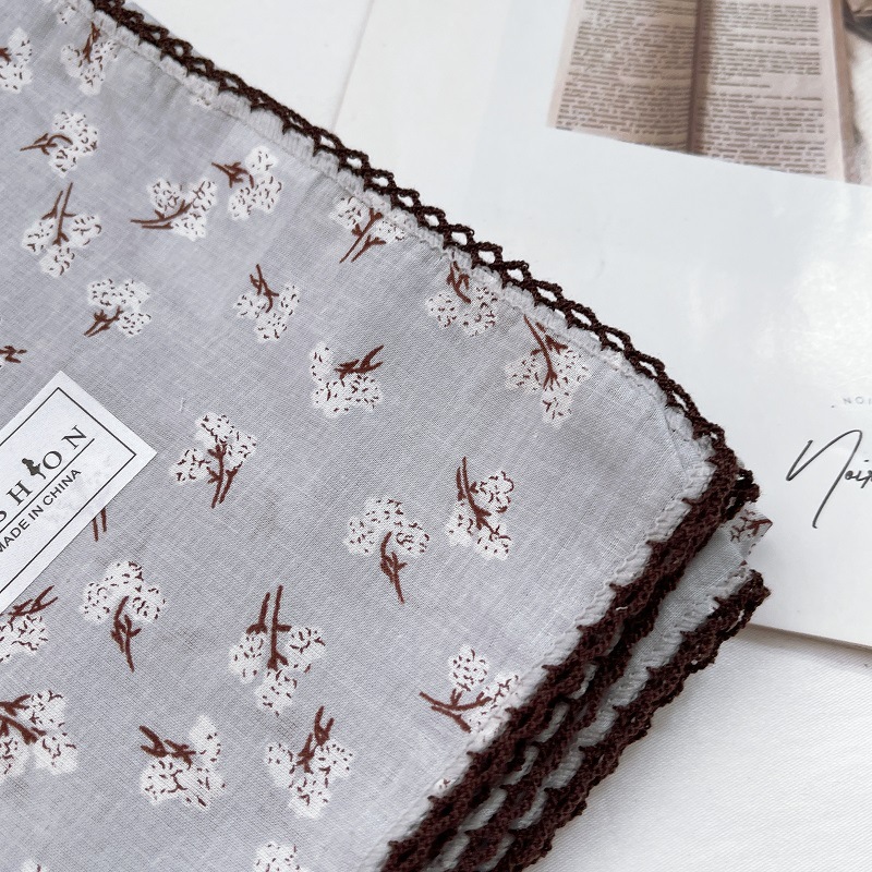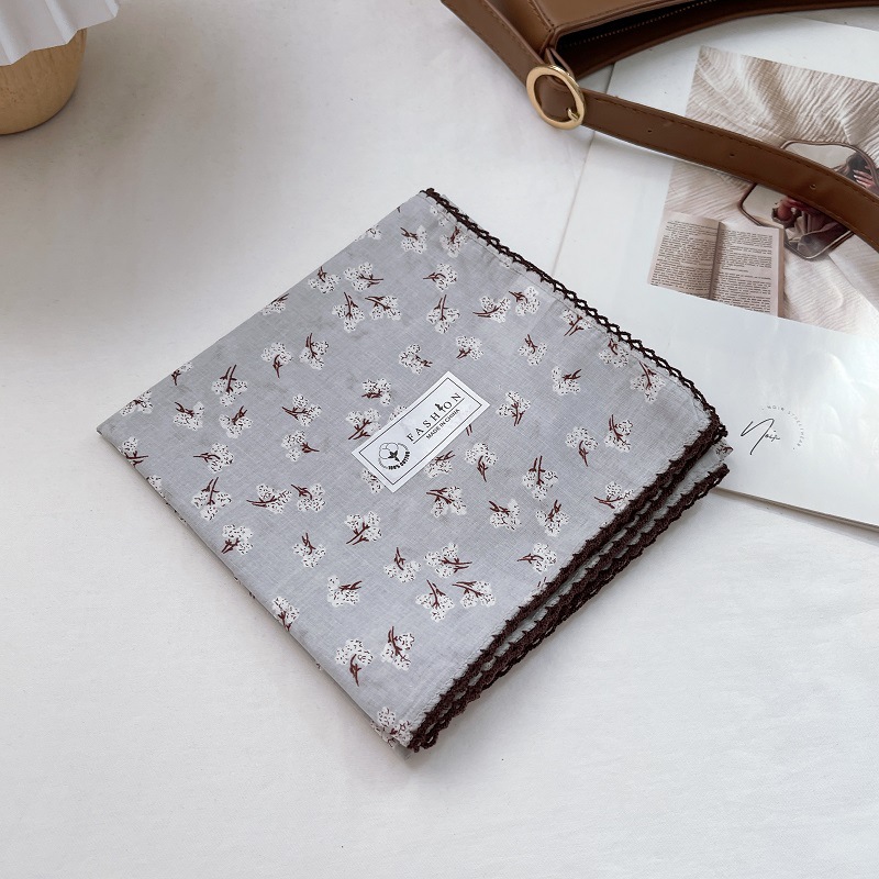 새로운 순수한 면 원사 스카프 검은 쌀 작은 광장 스카프 실크 스카프 머리 벨트 봄과 여름 목 보호 스카프 여성 머리 스카프 꽃 빈티지스토어 가기
