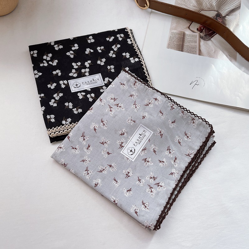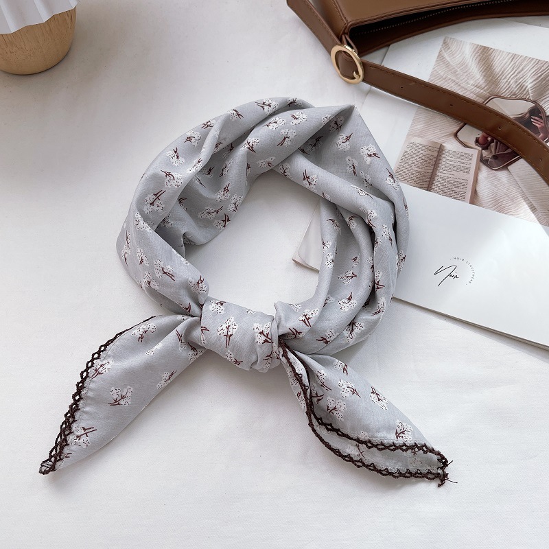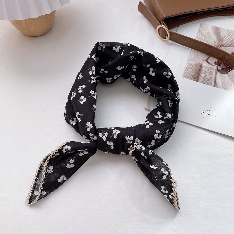 새로운 순수한 면 원사 스카프 검은 쌀 작은 광장 스카프 실크 스카프 머리 벨트 봄과 여름 목 보호 스카프 여성 머리 스카프 꽃 빈티지
