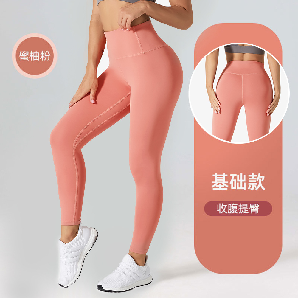 노딩 누드 피치힙 하이웨이스트 힙업 스포츠 피트니스 팬츠, 당황스러운 라인 없음, 배를 조여주는 타이트한 여성용 요가 팬츠