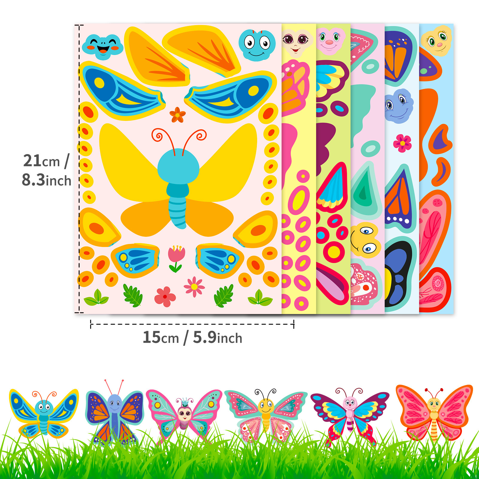 6 장/가방 장식 나비 얼굴 스티커 국경 새로운 아마존 AliExpress 어린이 나비 DIY 퍼즐 스티커