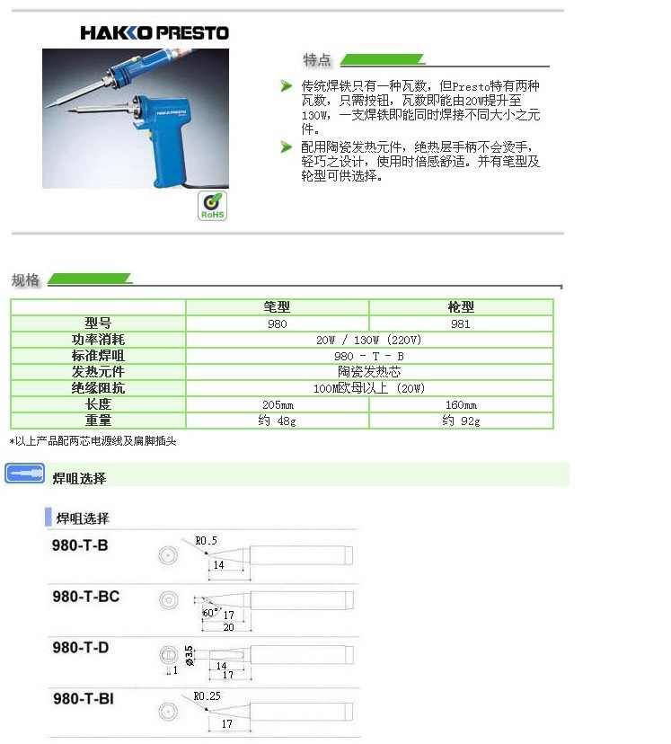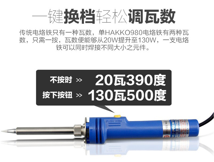 일본 HAKKO 백색 빛 이중 전력 전기 철 NO. 980 981 일정한 온도 조정가능한 높은 전력 전기 용접 펜