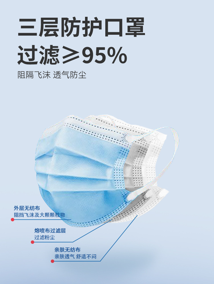 마스크 방진 및 산업용 먼지 방지 일회용 멜트블로운 천 3겹 4000개 풀박스 도매