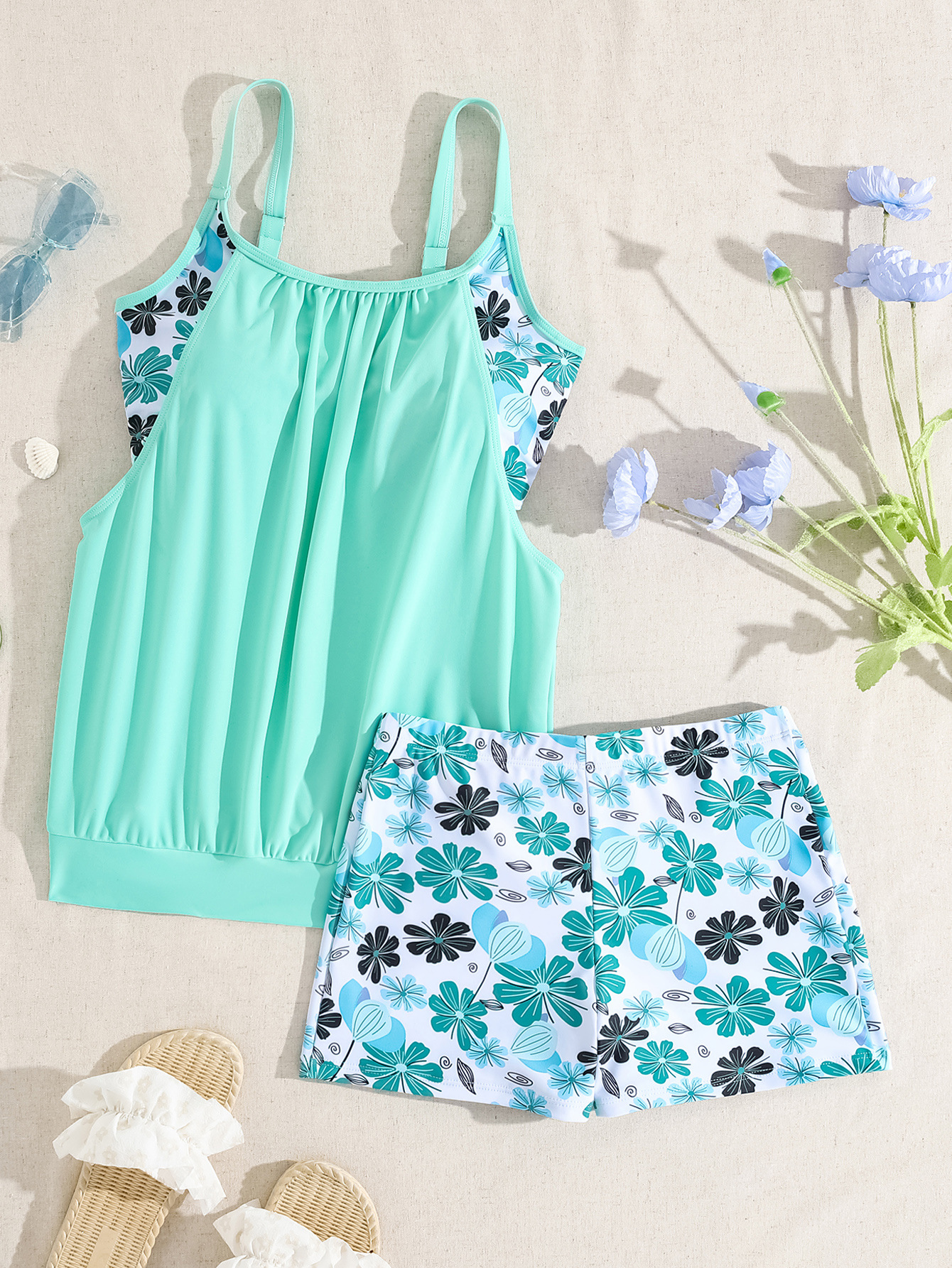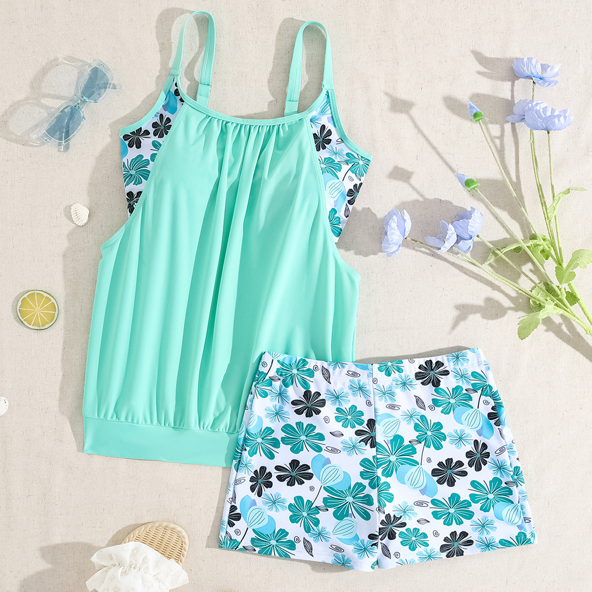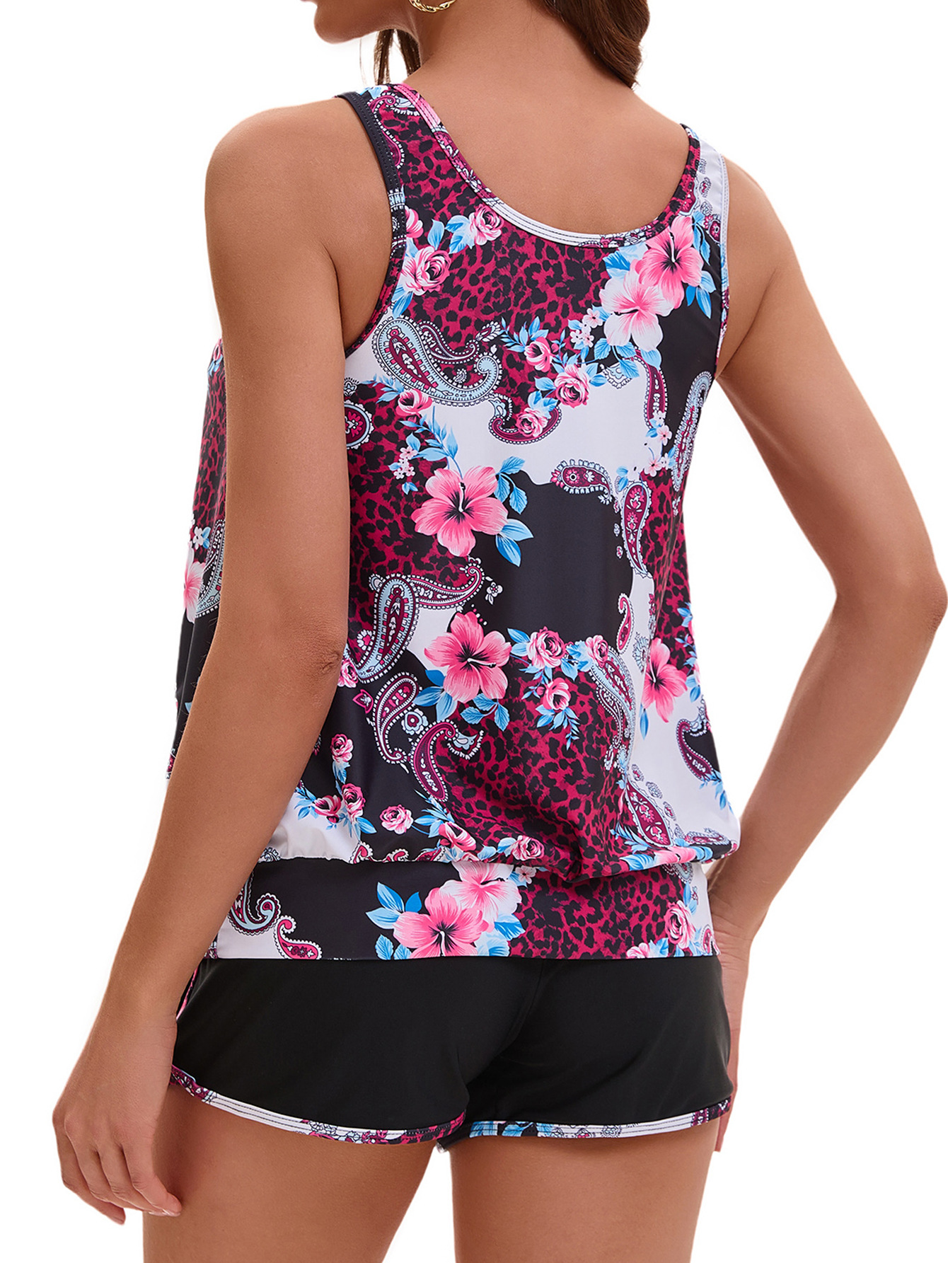 2026 신상 유럽 및 미국 무역용 탱키니 프린트 섹시 하이웨이스트 비키니 분리형 수영복 여성용스토어 가기