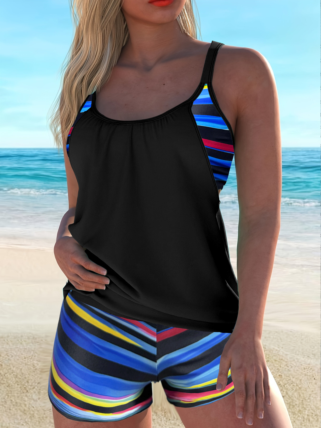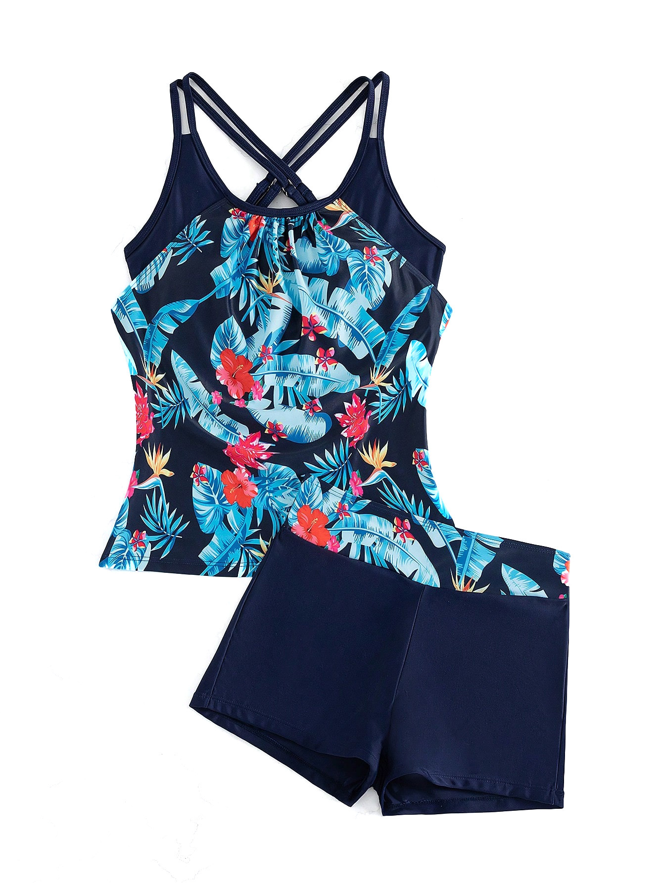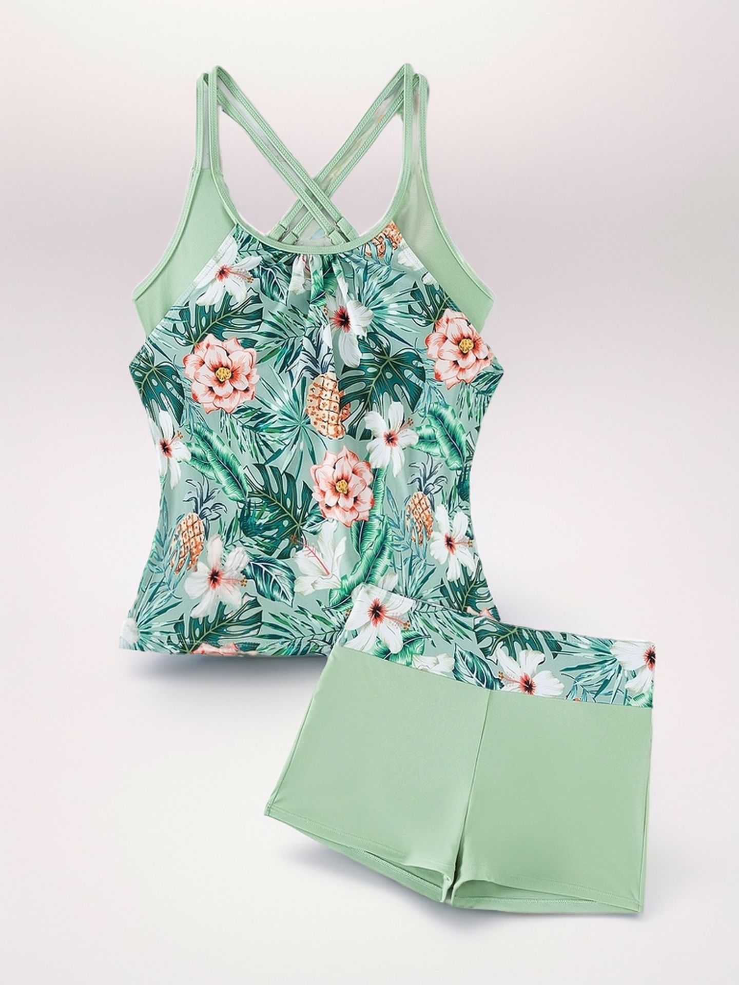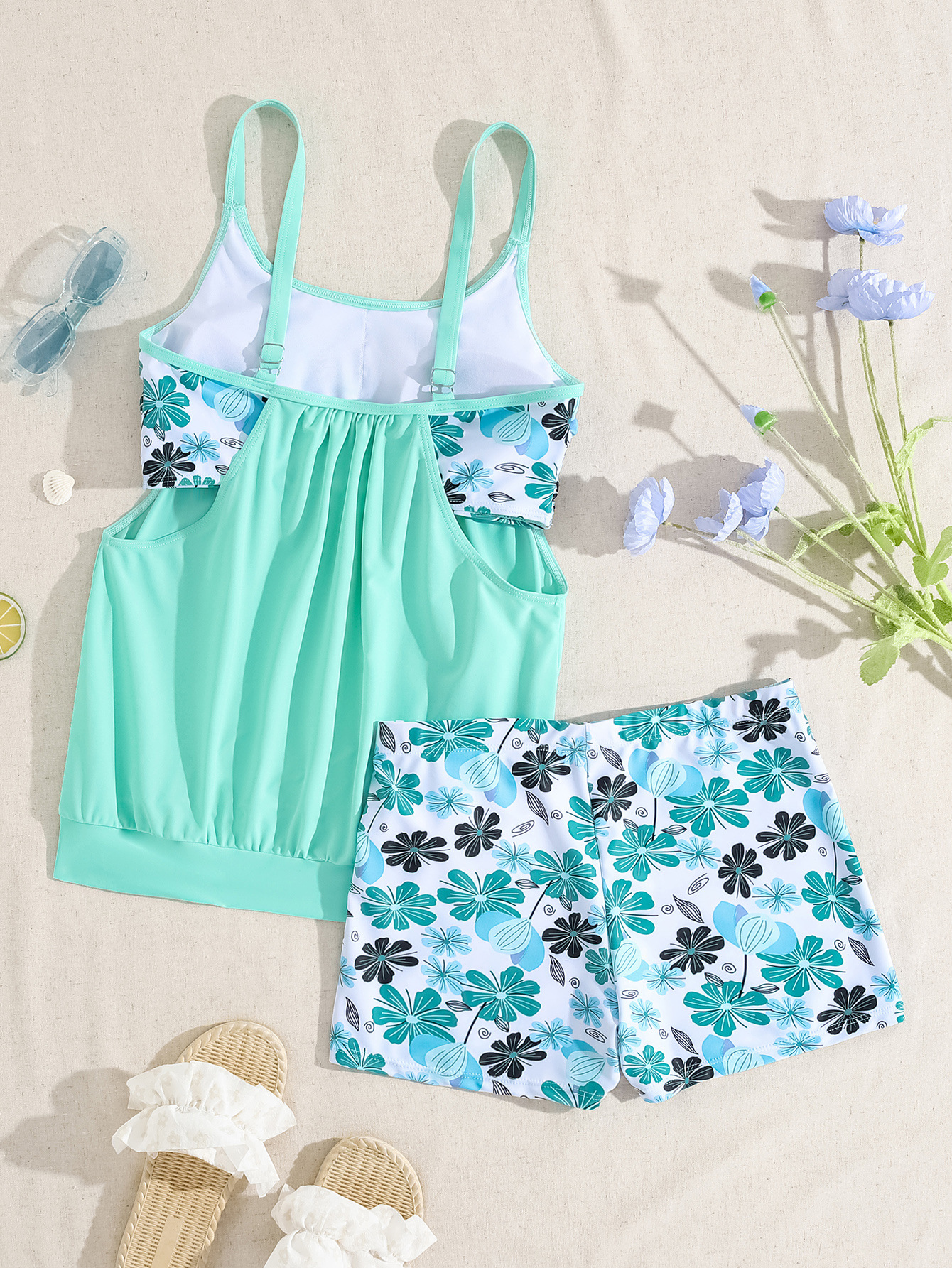 2026 신상 유럽 및 미국 무역용 탱키니 프린트 섹시 하이웨이스트 비키니 분리형 수영복 여성용스토어 가기