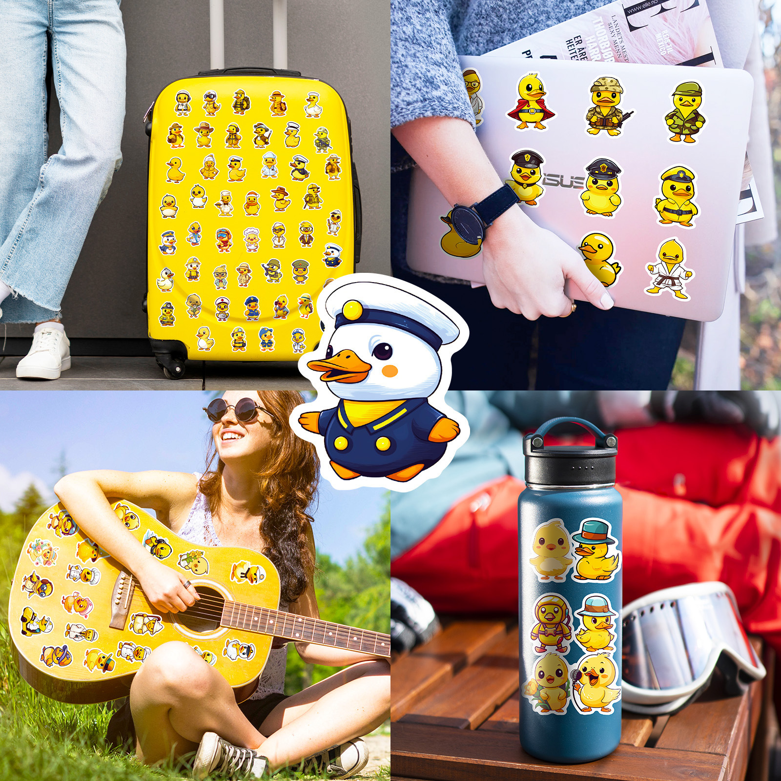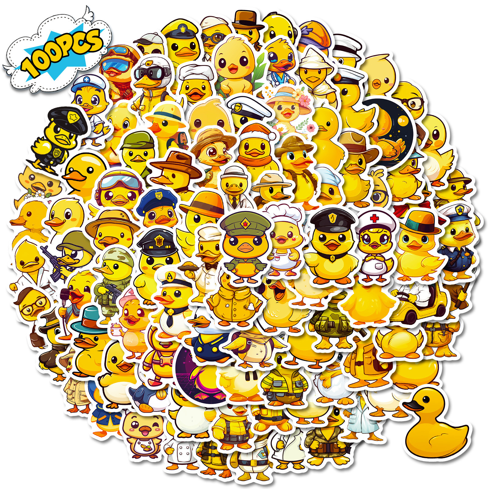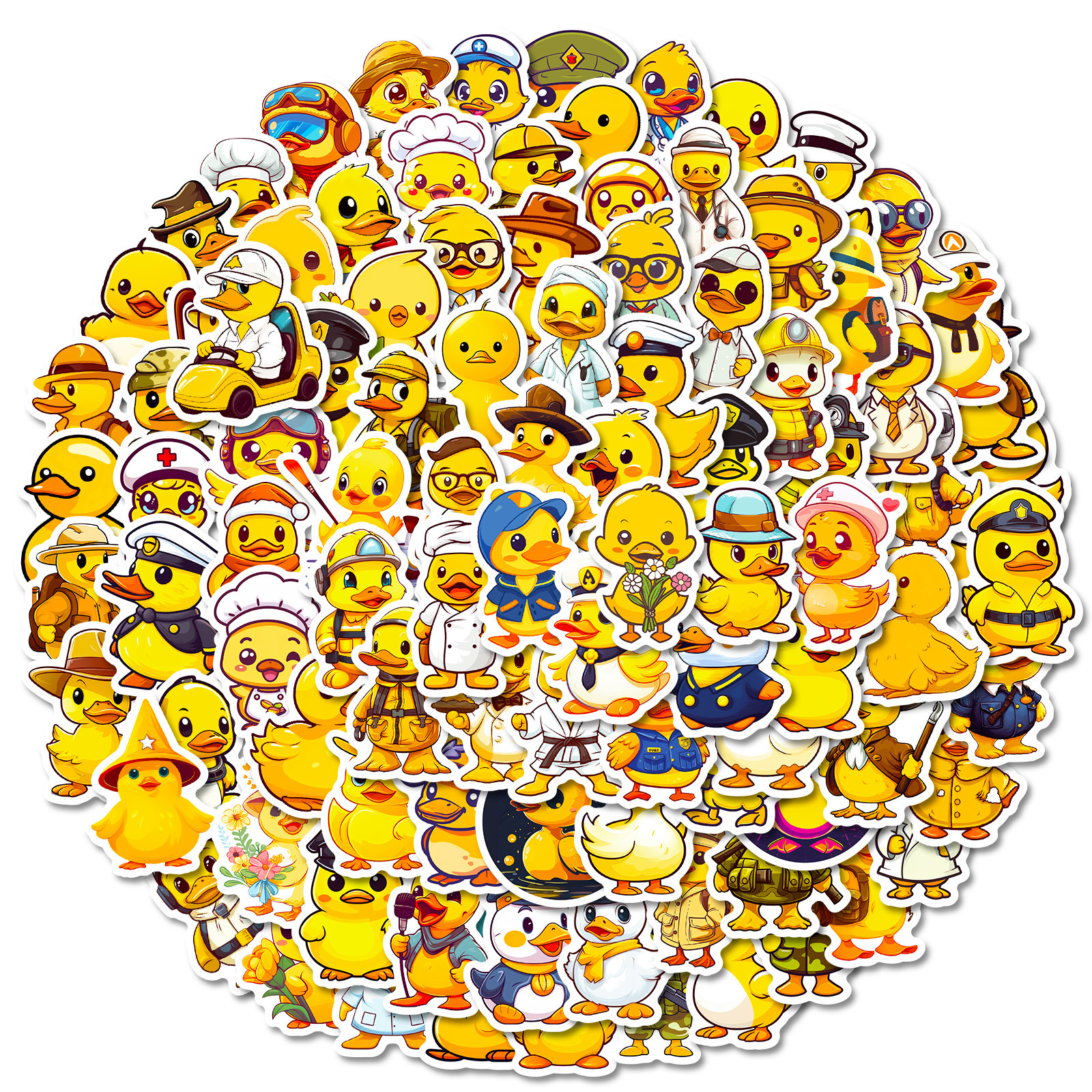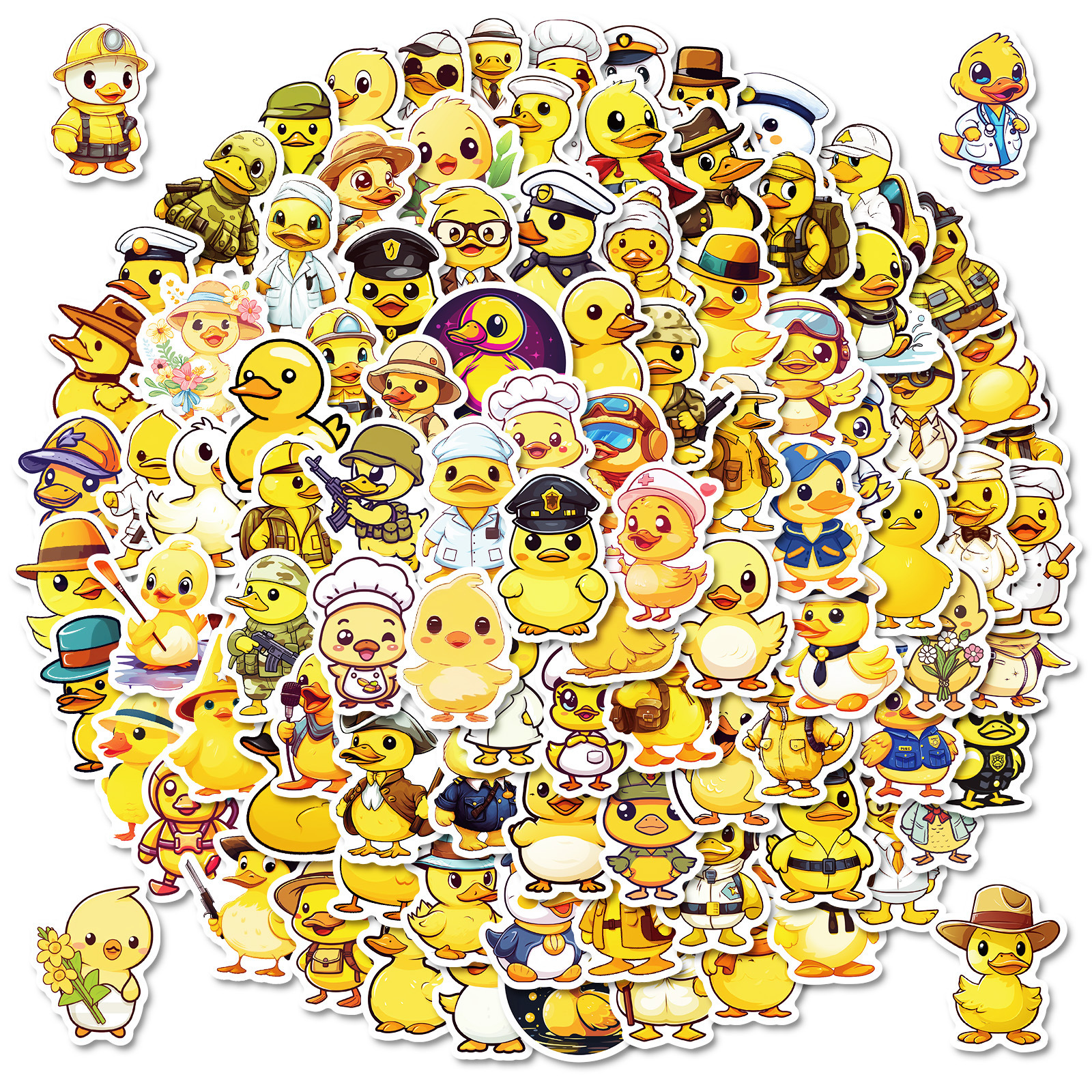 100 조각 작은 노란 오리 스티커 만화 작은 노란 오리 낙서 창조적 인 귀여운 수하물 스케이트 보드 자전거 방수 스티커