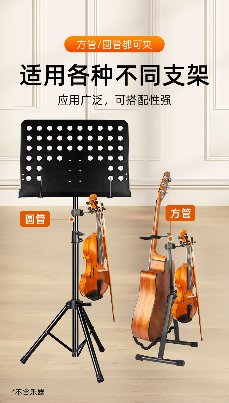 실버피쉬 바이올린 후크는 바이올린을 걸 수 있으며, 구멍을 뚫을 필요가 없으며, 금속 클립으로 바이올린 걸이를 랙에 고정할 수 있습니다.