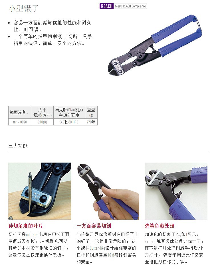 MN-0020 8寸 40度弯嘴 适合平切突出之钢丝铁线。