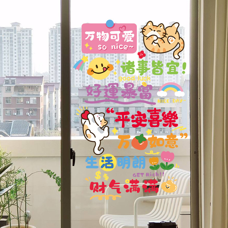 유리 충돌 방지 스티커 주방 발코니 문과 창문 장식 귀여운 정전기 스티커 회사 슬라이딩 도어 대형 원활한 스티커스토어 가기