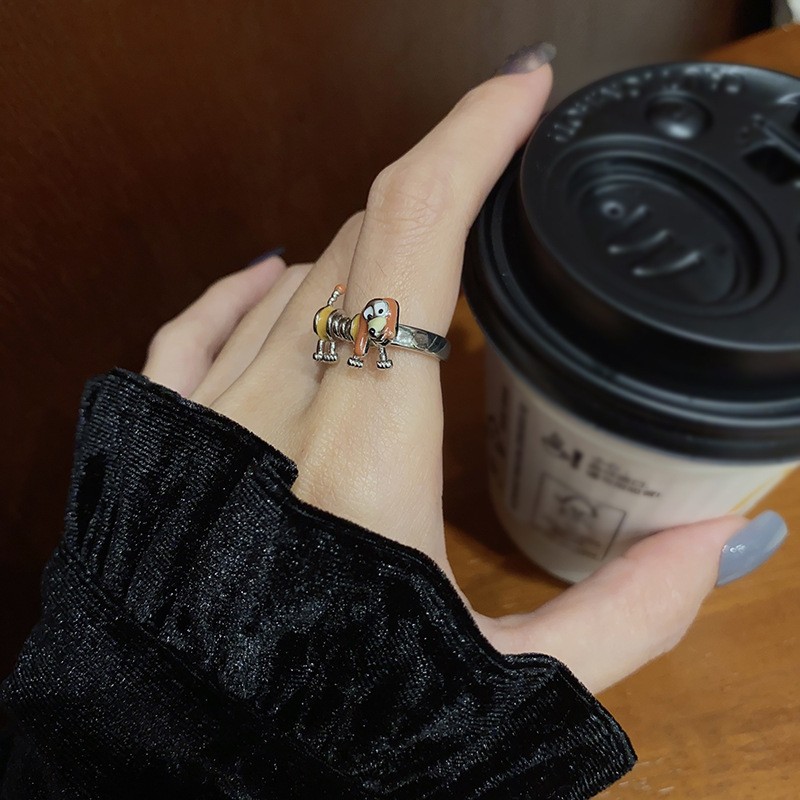 재미있는 봄 귀여운 개 반지 여성의 빛 럭셔리 틈새 디자인 유행 우아한 반지 개인화 된 올 매치 팔찌