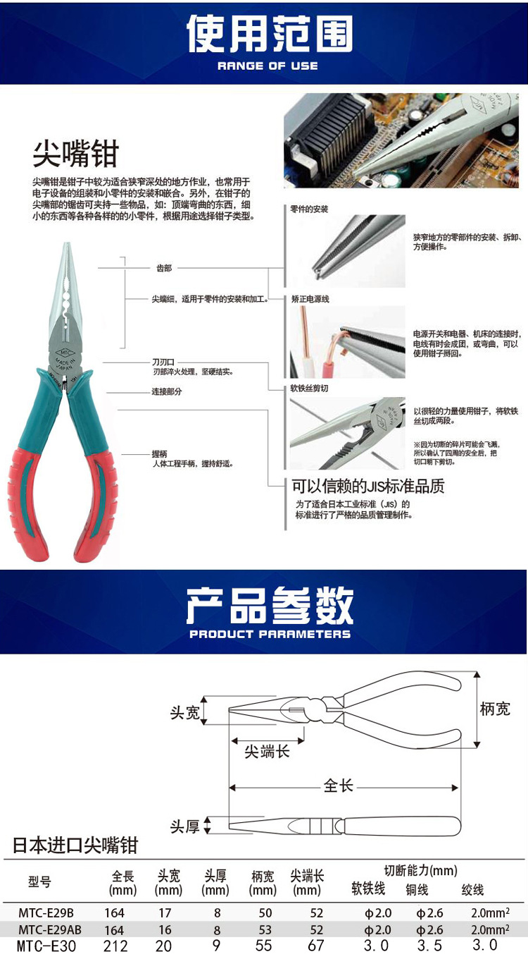 일본 MTC 바늘 코 펜치 MTC-E29B E30 전기 바늘 노즈 펜치 6 인치 8 인치 와이어 펜치 절단 도구스토어 가기