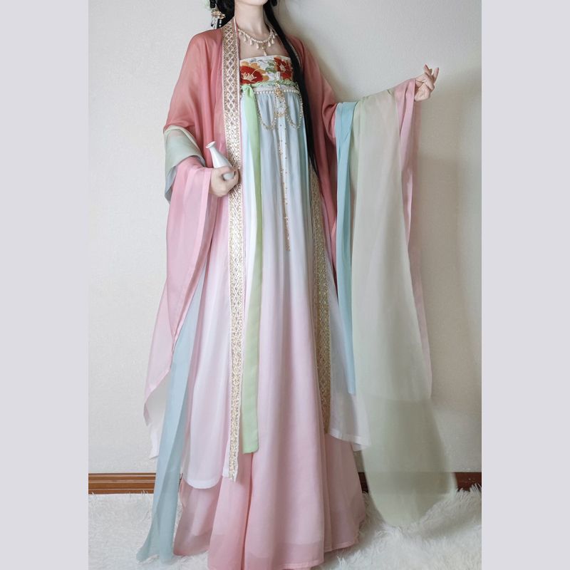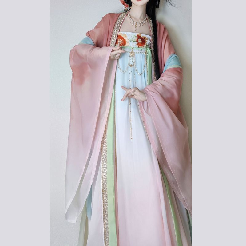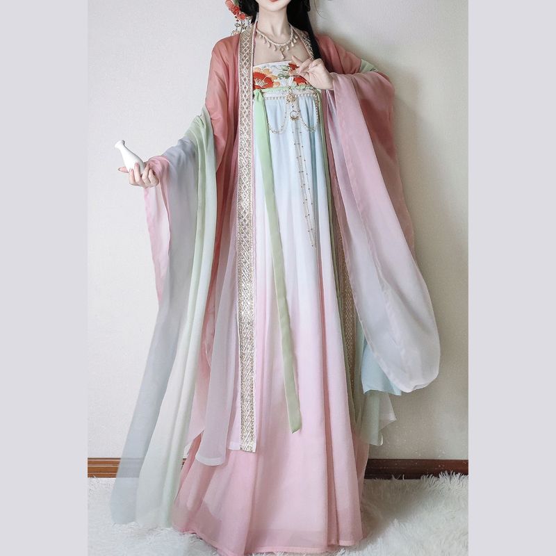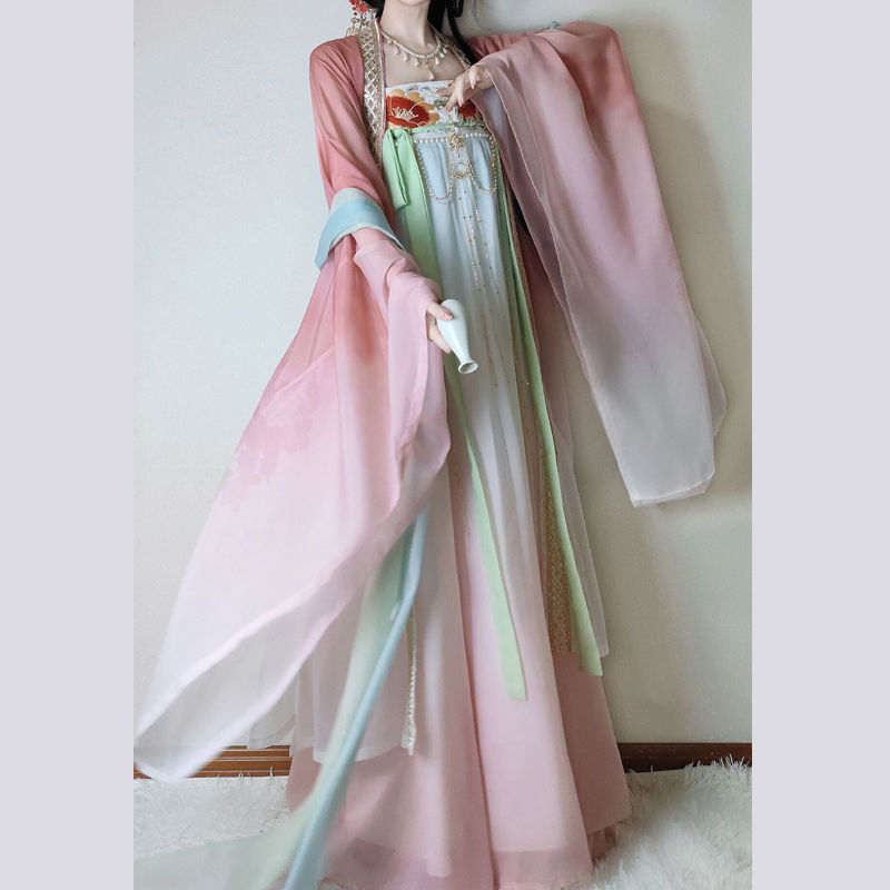 성인 한푸 여성의 홍차 탕 스타일 원피스 흉포 익은 스커트 얇은 자수 슈퍼 페어리 큰 소매 봄과 여름 세트 여행 헤어핀 꽃스토어 가기