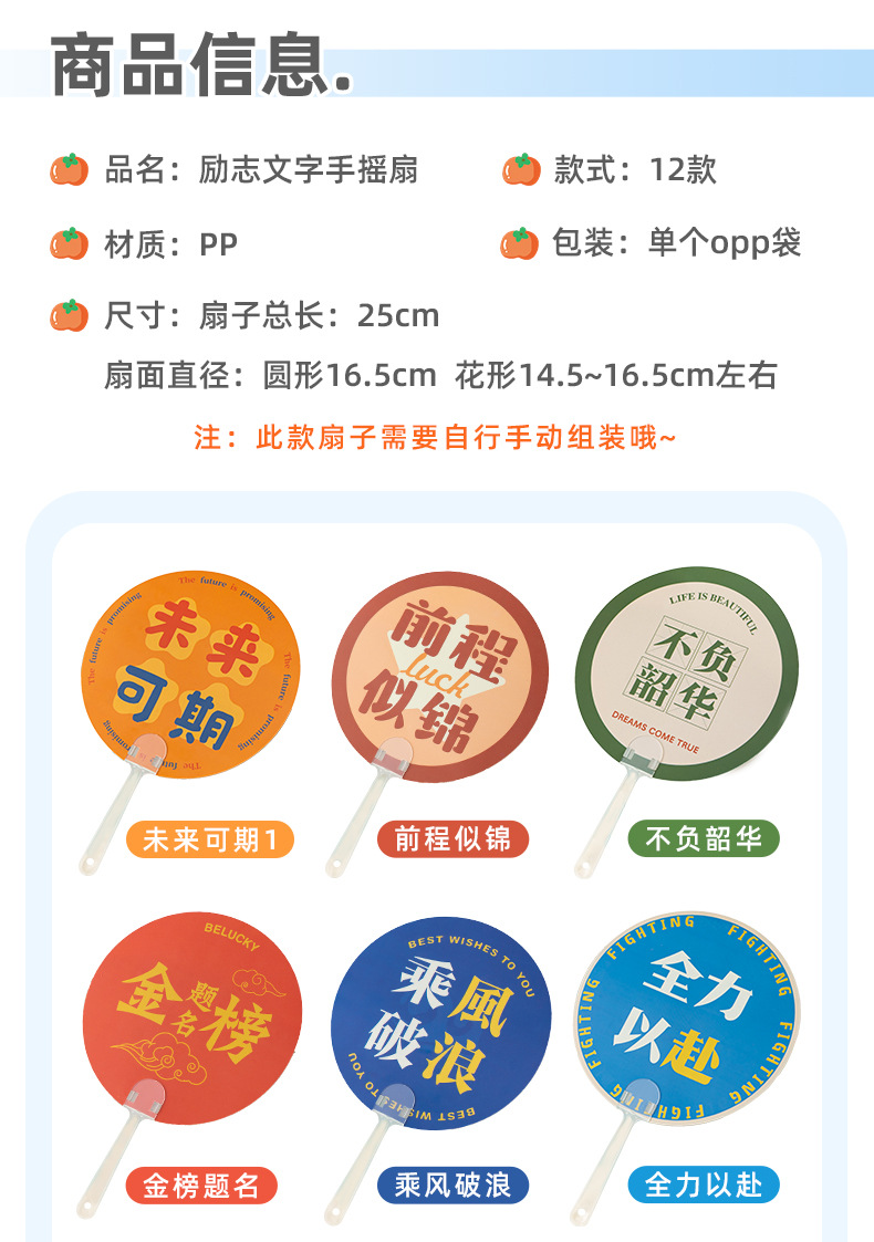 창조적 인 pp 팬 영감 텍스트 미니 작은 팬 어린이 라운드 팬 여름 초등학생 보상 선물 상스토어 가기