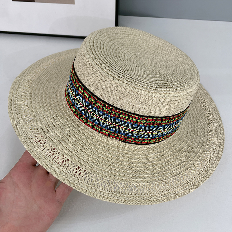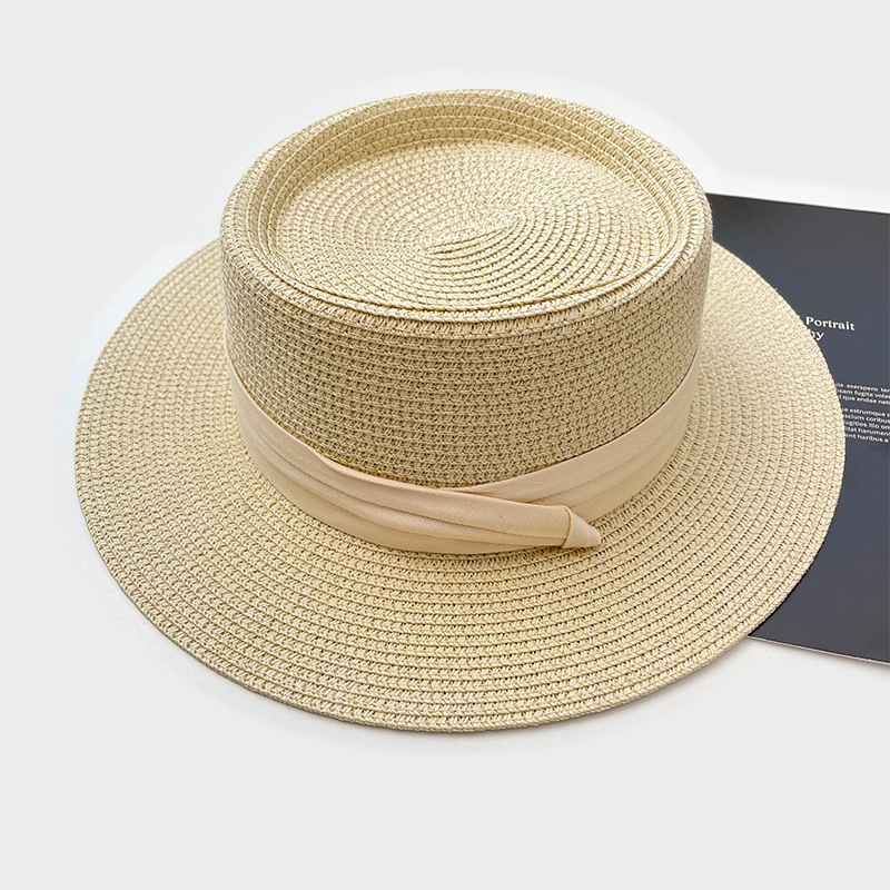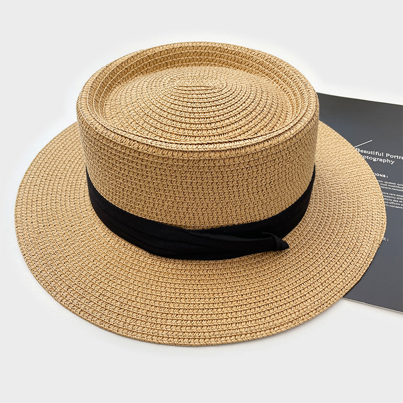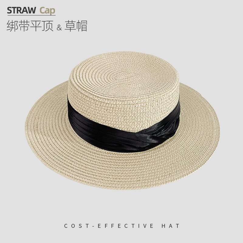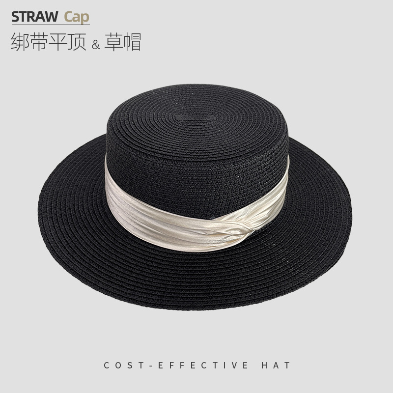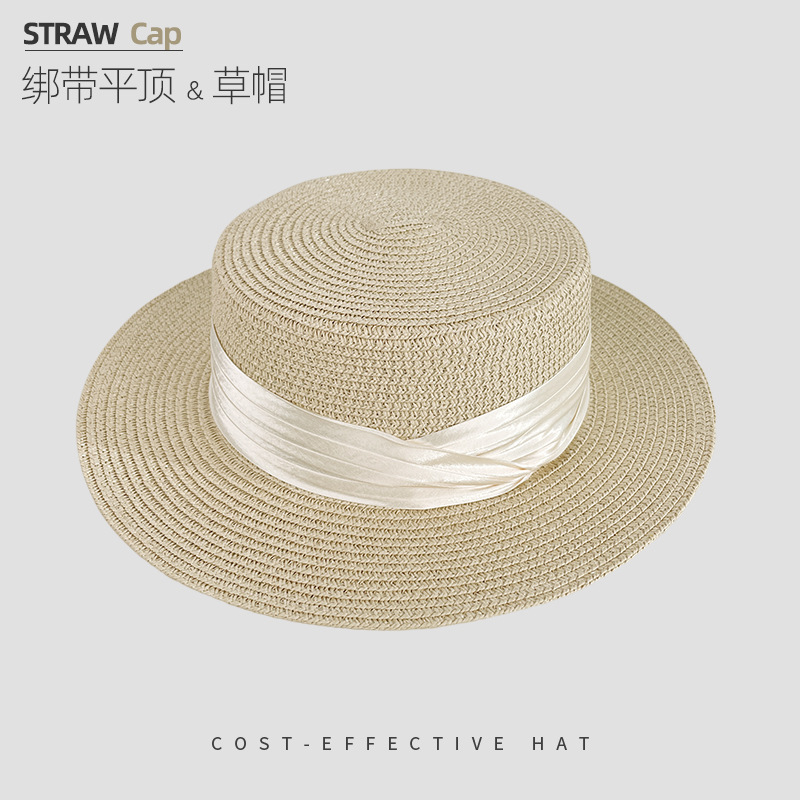 甜美风平顶草帽草编帽子女款夏季礼帽大帽檐防晒遮阳帽海边沙滩帽