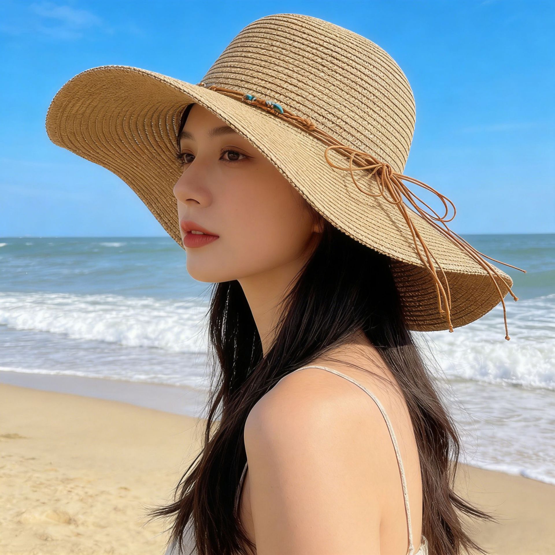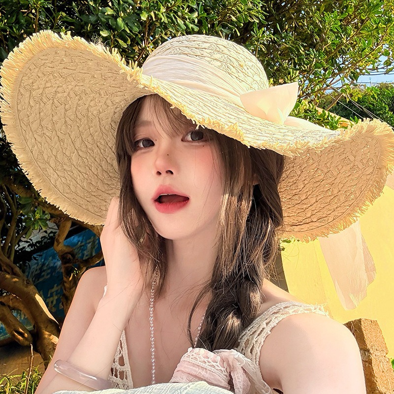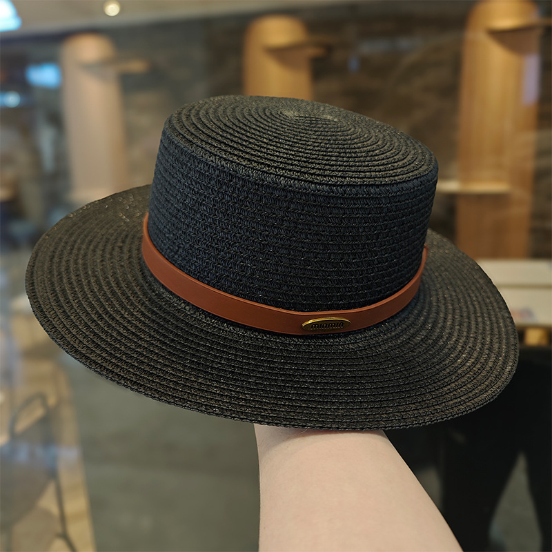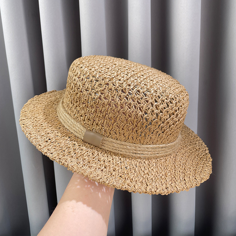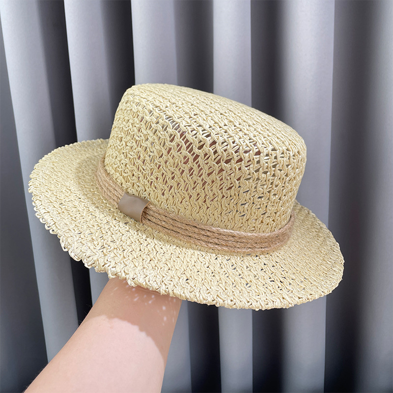 海边沙滩草编帽子女夏季防晒大帽檐遮阳帽高级感礼帽法式平顶草帽
