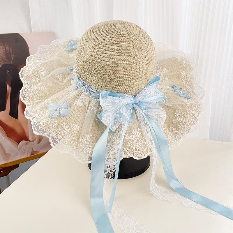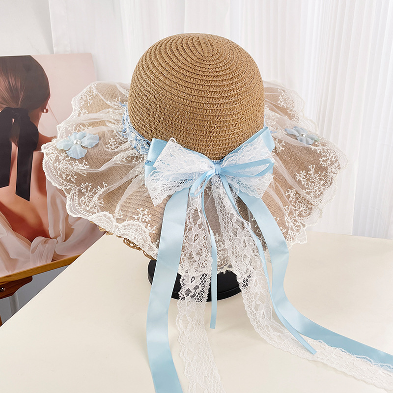 • D- 651m 컬러 밀짚모자 [블루 레이스 리본]
