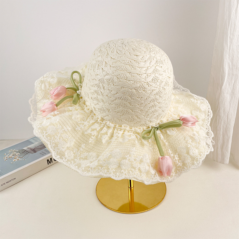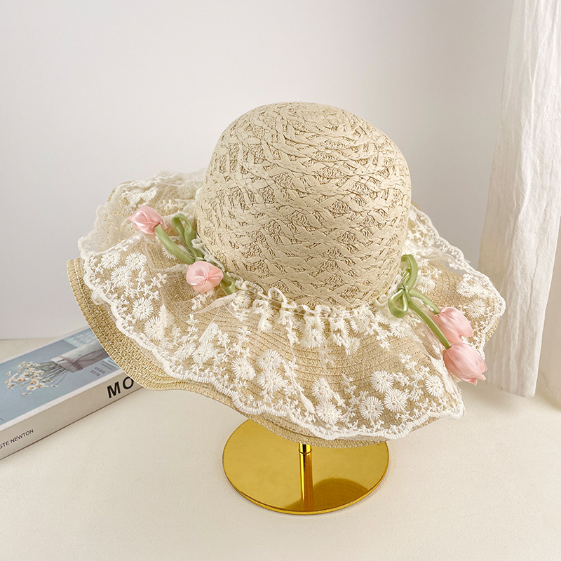 • D- 456m 컬러 레이스 꽃 밀짚모자