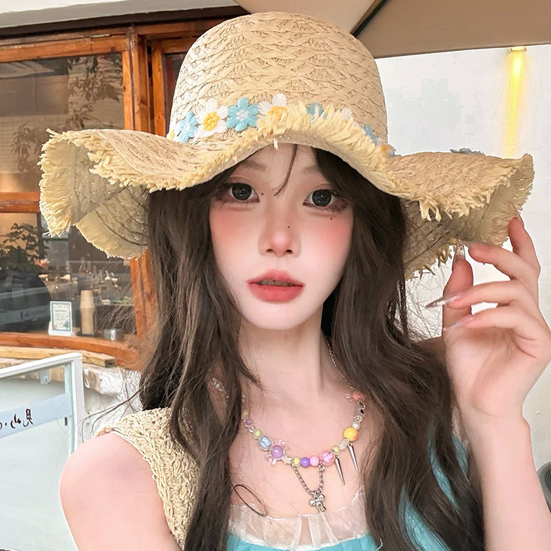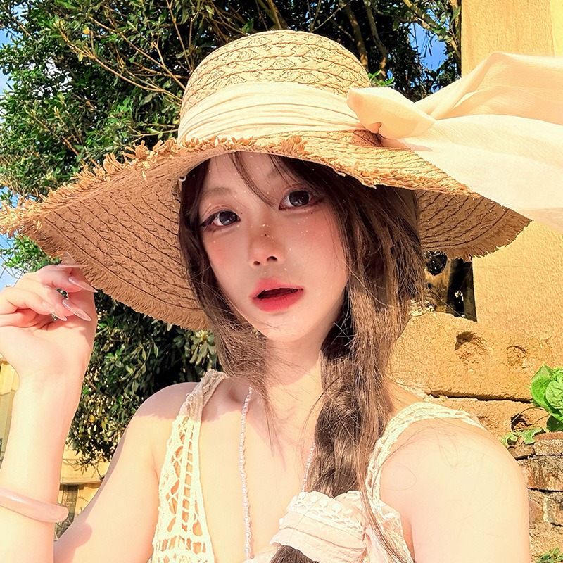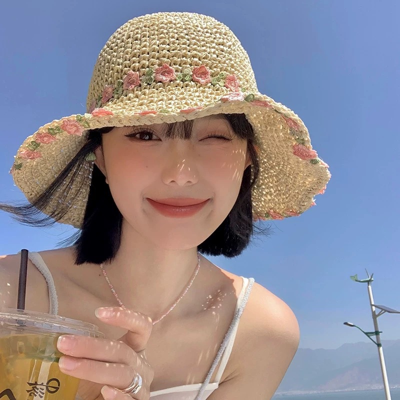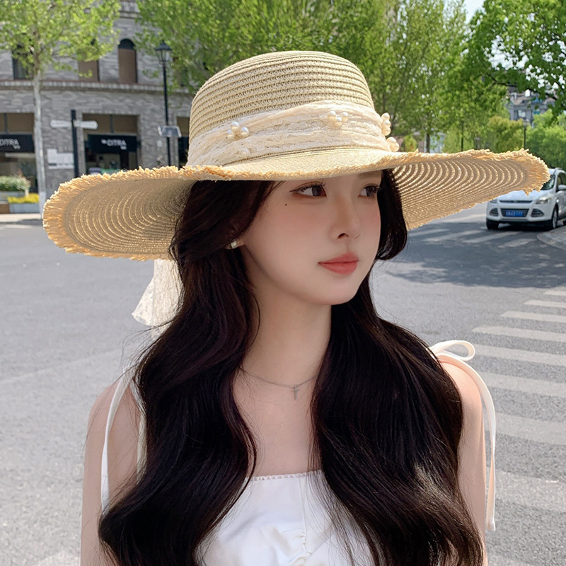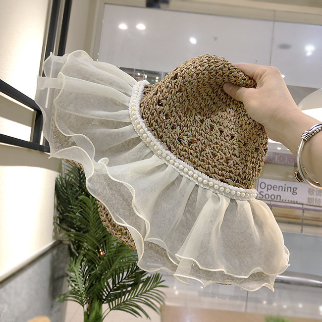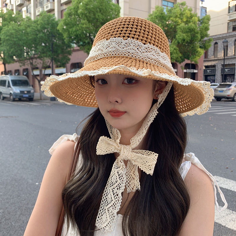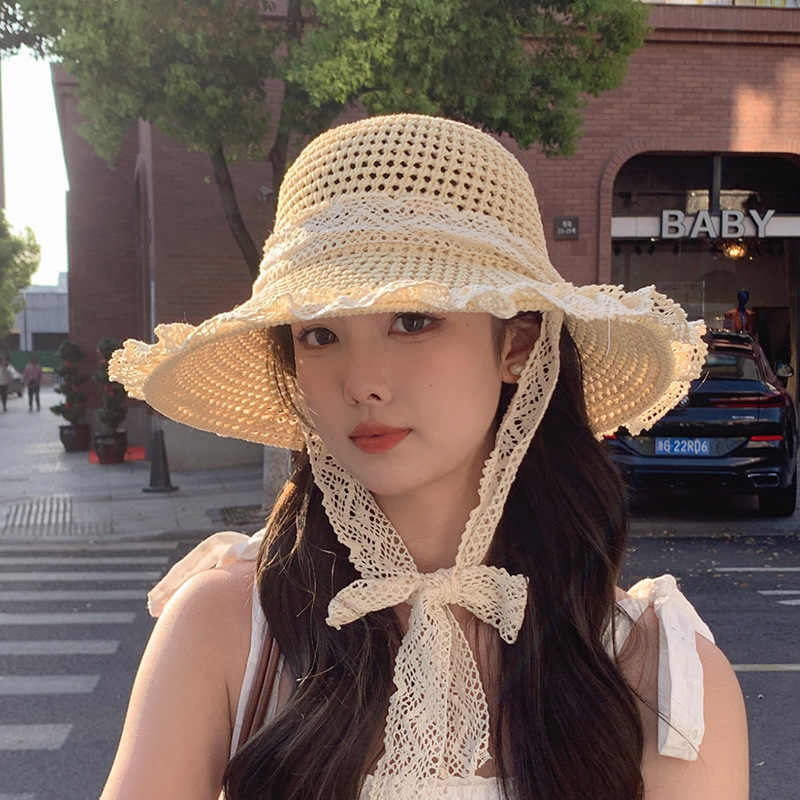 해변 모자 레이스 밀짚모자 여성용 여름 햇빛 가리개 통기성 자외선 차단 어부 모자 휴양지 스타일 밀짚모자스토어 가기