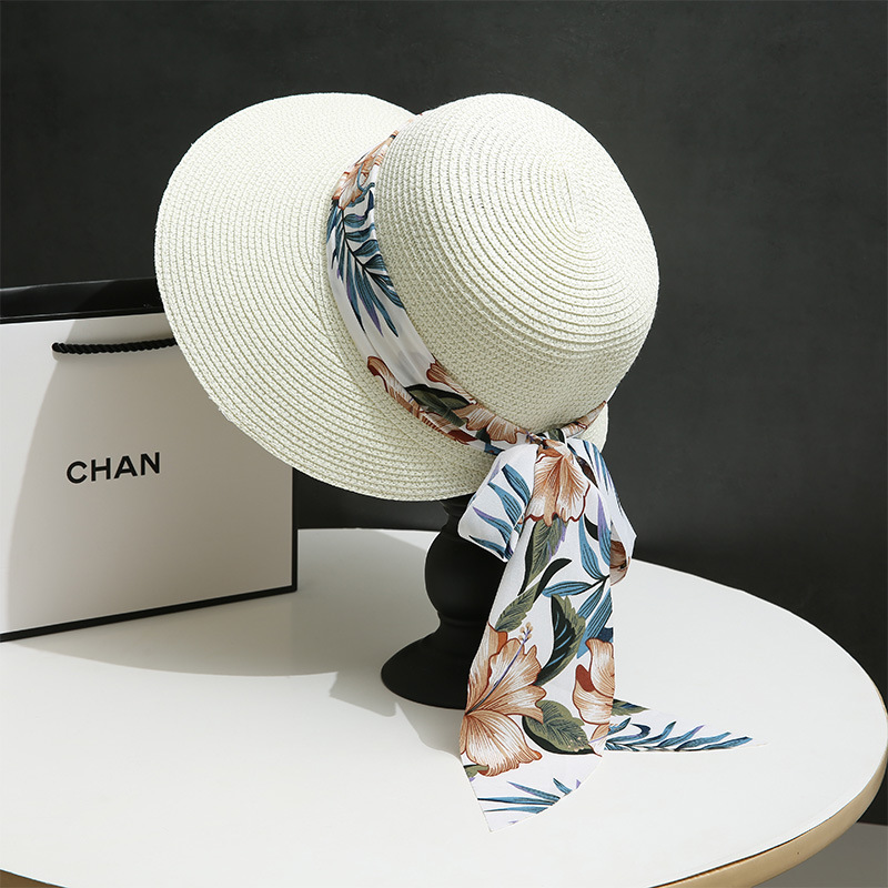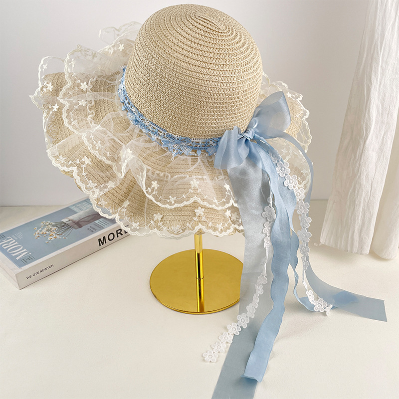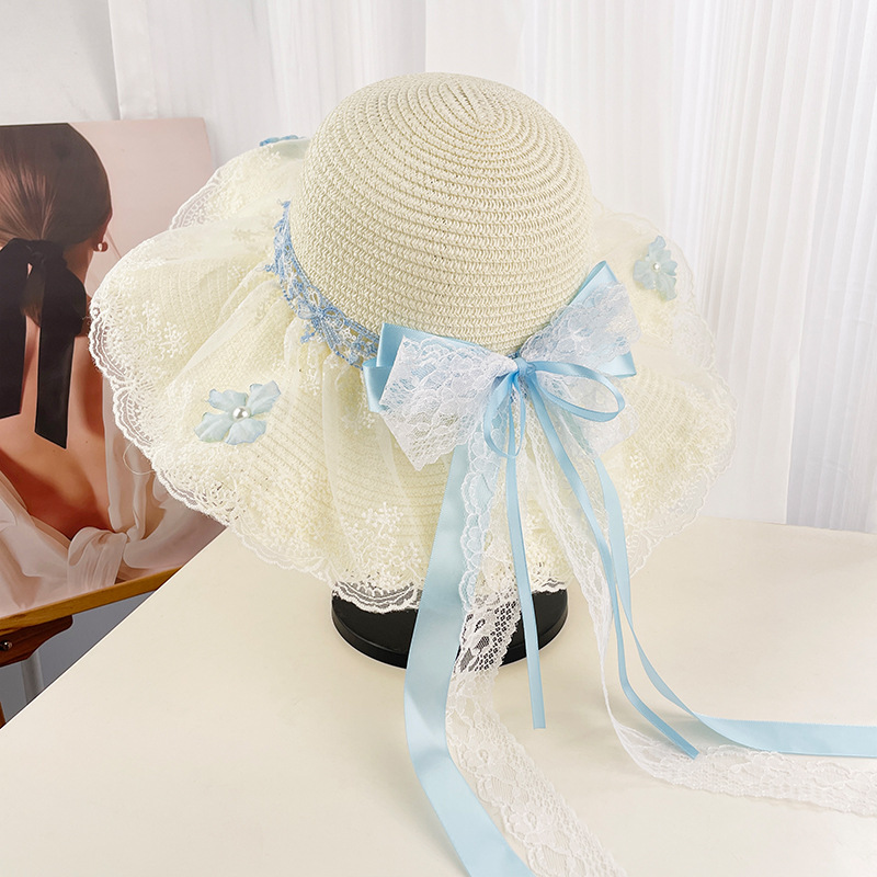 • D- 217m 컬러 레이스 리본 밀짚모자