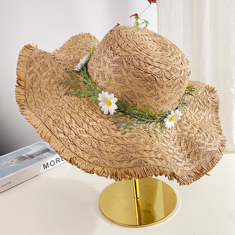 • D-529 카키 데이지 로우 엣지 밀짚모자