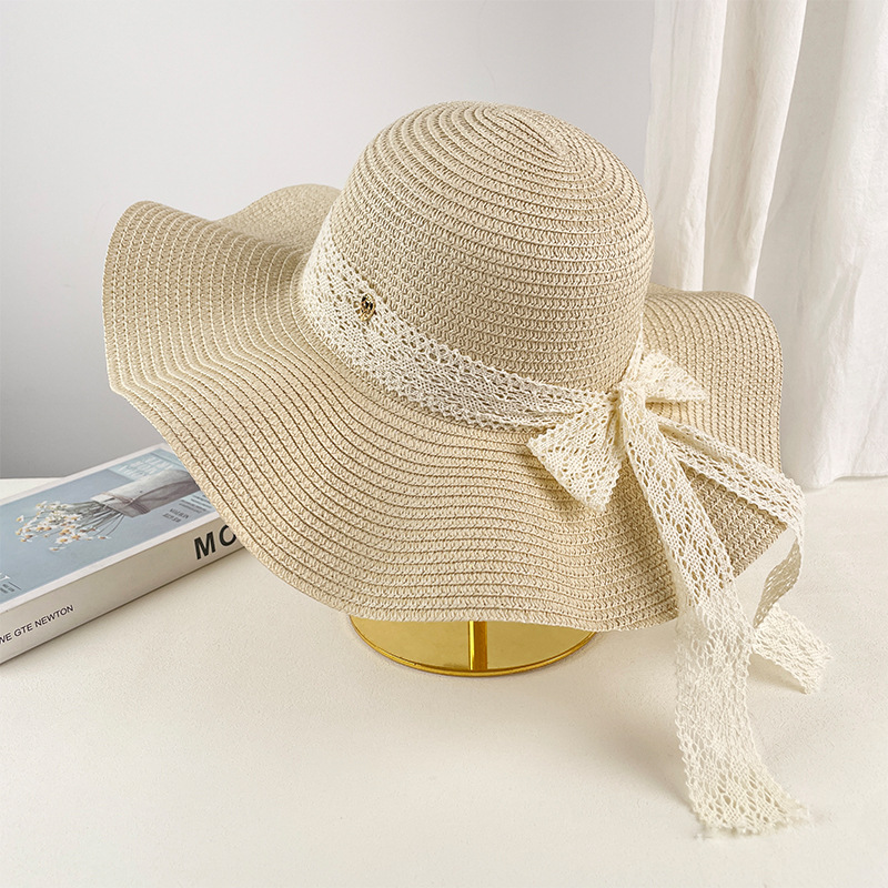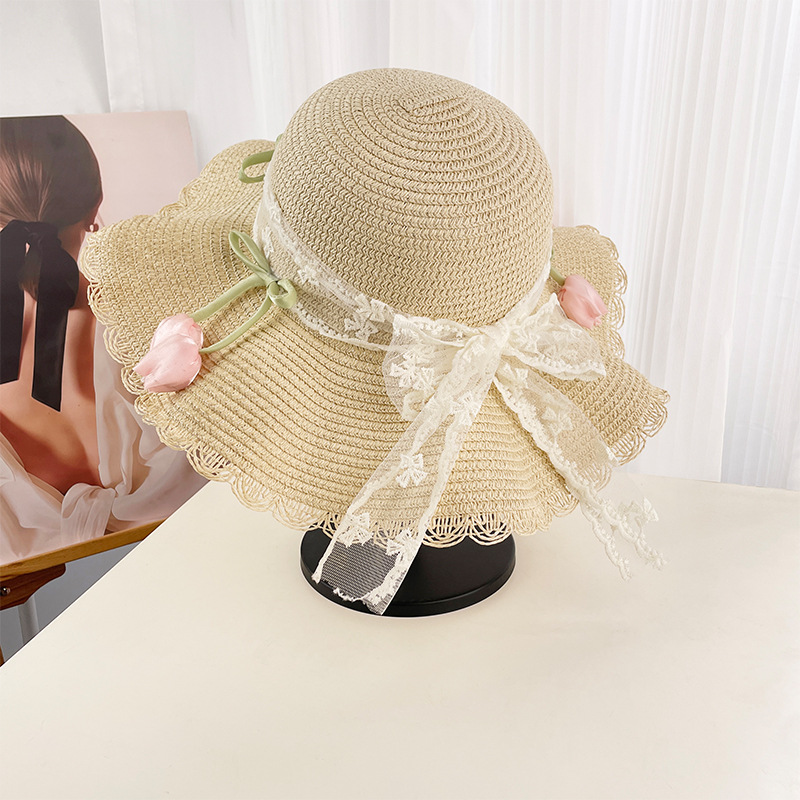 해변 모자 레이스 밀짚모자 여성용 여름 햇빛 가리개 통기성 자외선 차단 어부 모자 휴양지 스타일 밀짚모자