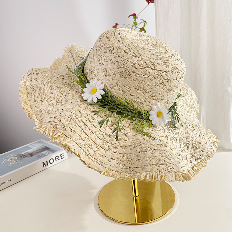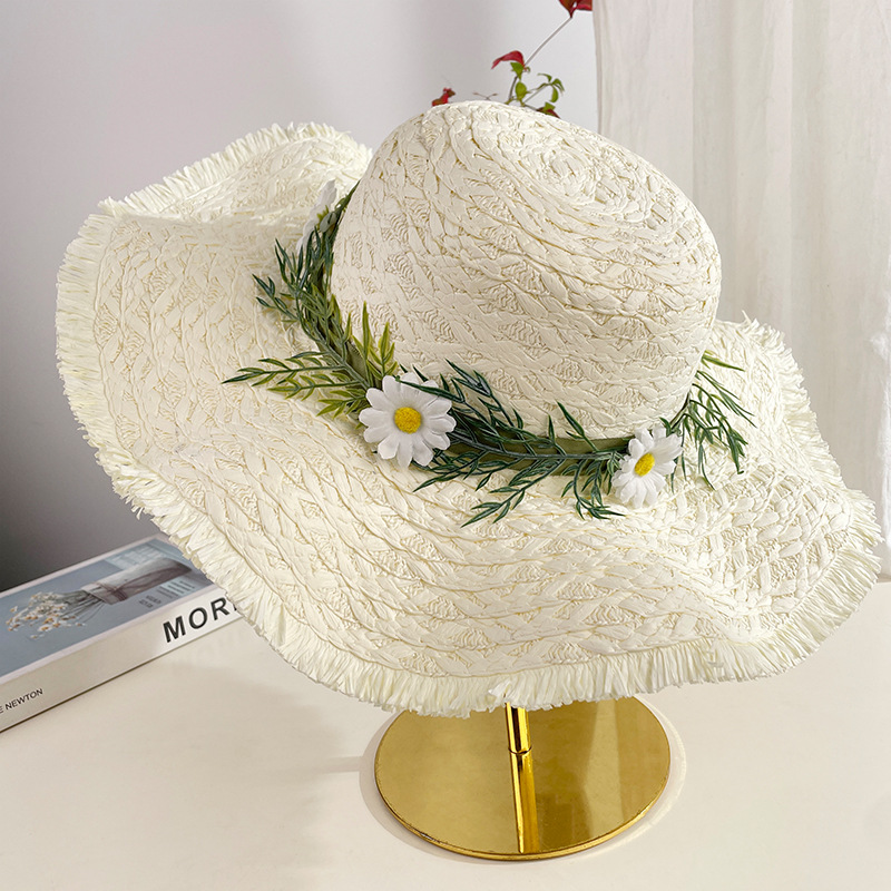 • D- 529m 화이트 데이지 퍼 챙 밀짚모자