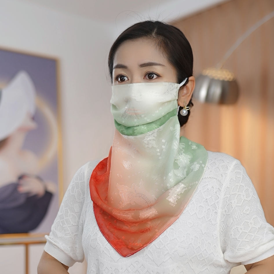 여름 태양 보호 목 보호 스카프와 여성의 UV 보호 마스크 얇은 통기성 얼굴 커버 실크 스카프 베일
