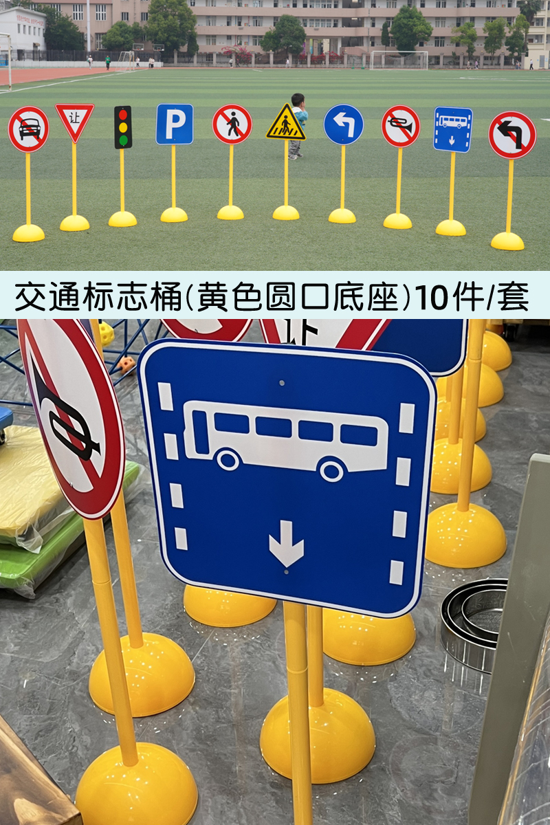 • 교통 표지판을위한 10 개의 노란색 원형 기지 세트