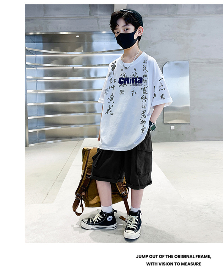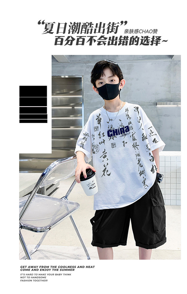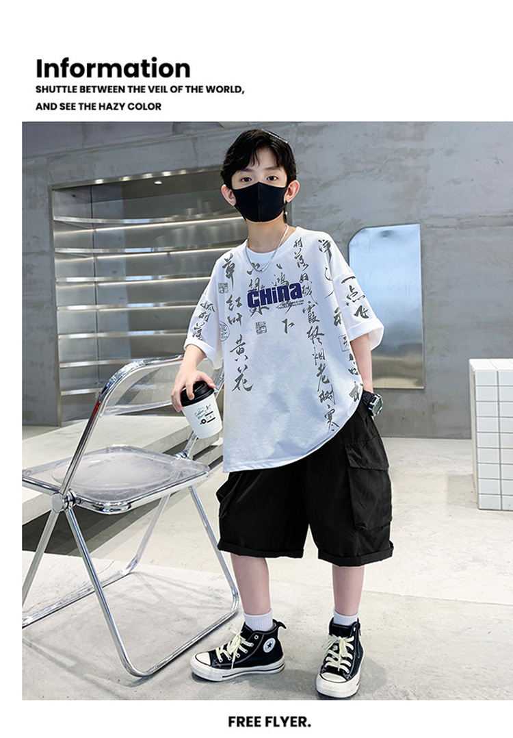 어린이 의류 소년 여름 세트 2024 새로운 스타일 중대형 어린이 반팔 소년 어린이 캐주얼 투피스 세트스토어 가기