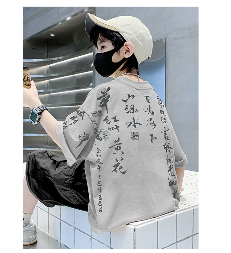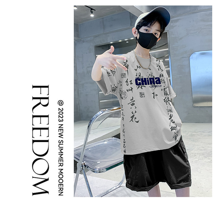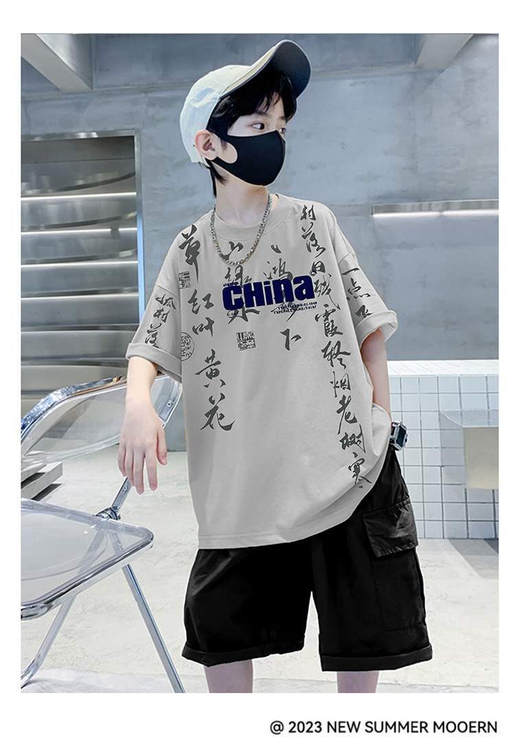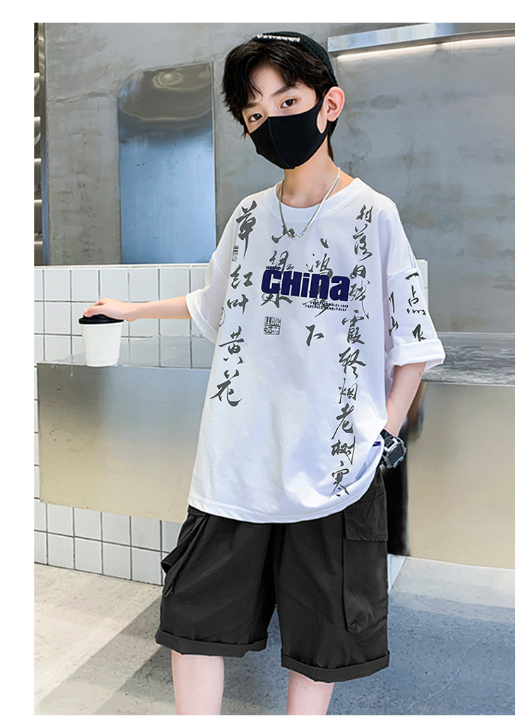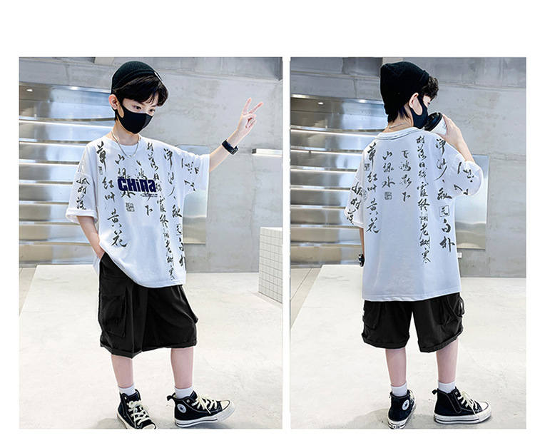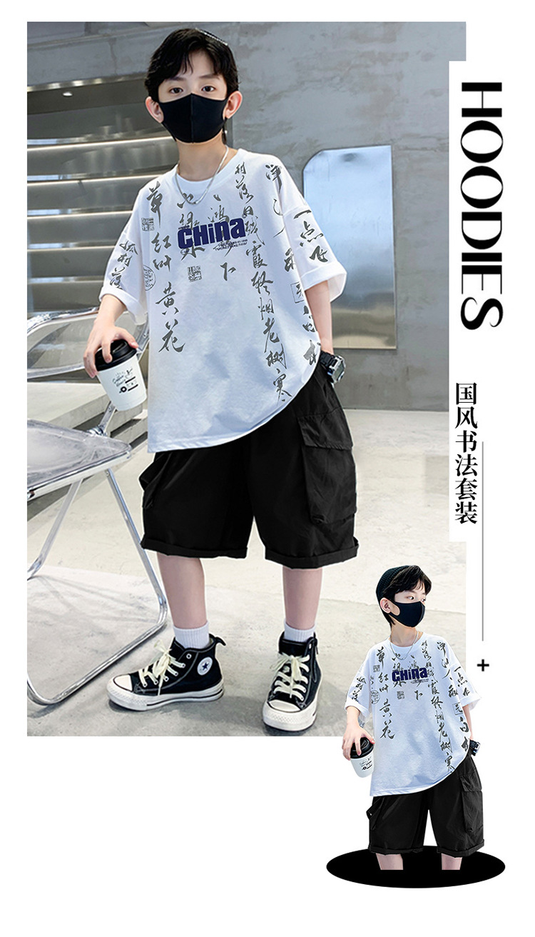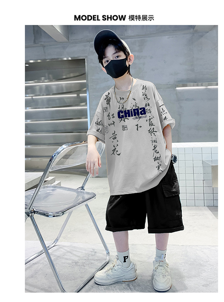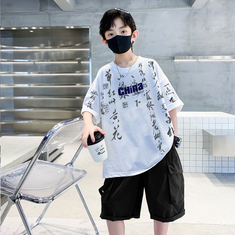 어린이 의류 소년 여름 세트 2024 새로운 스타일 중대형 어린이 반팔 소년 어린이 캐주얼 투피스 세트