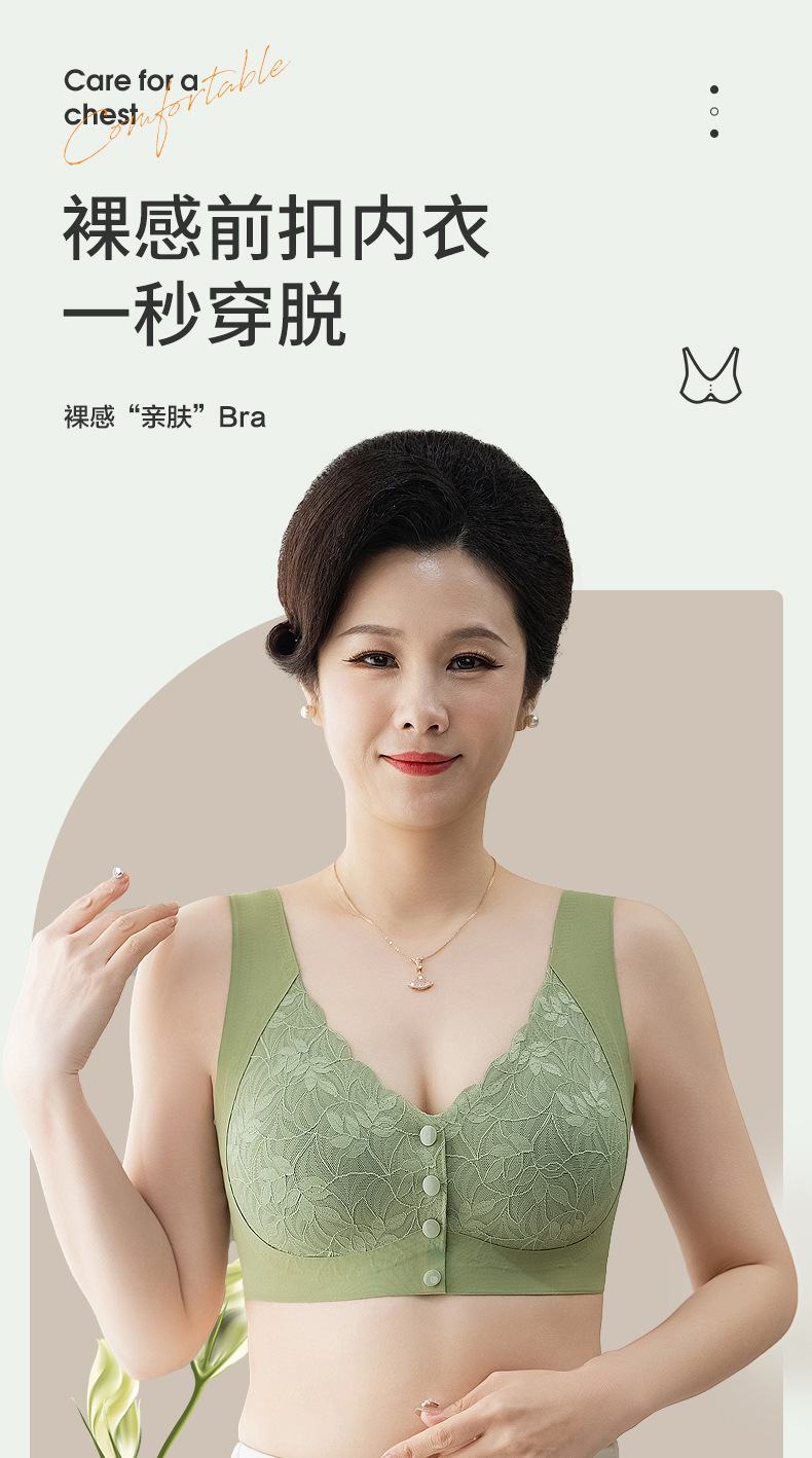 어머니의 속옷 여성 앞 버클 브라 스틸 링 없음 중년 및 노인 여성 조끼 대형 여름 얇은 브래지어스토어 가기
