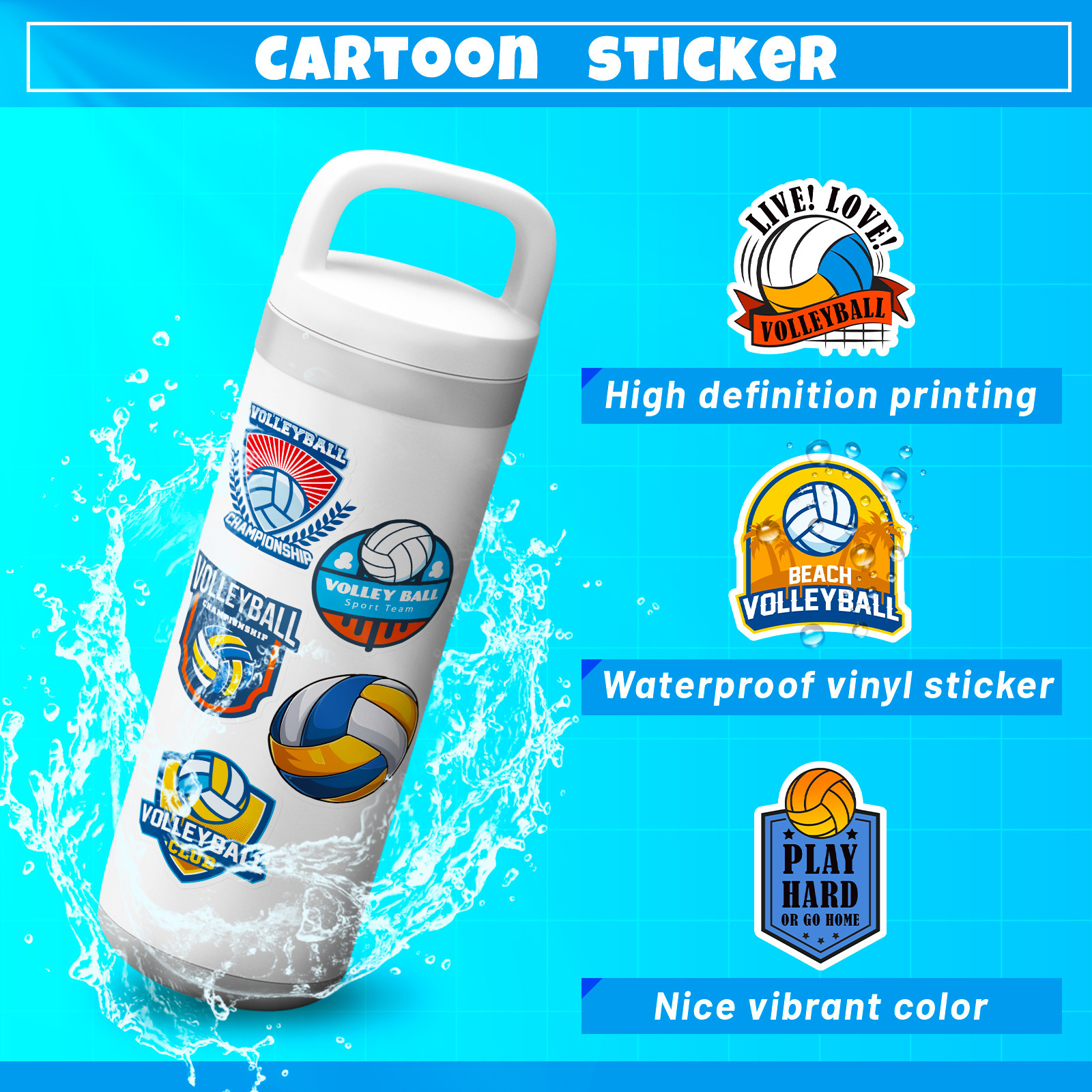 50종의 배구 믹스 스티커, Volle Ball 배구 스포츠 그래피티 스티커, 자동차 트렁크 방수 스티커스토어 가기