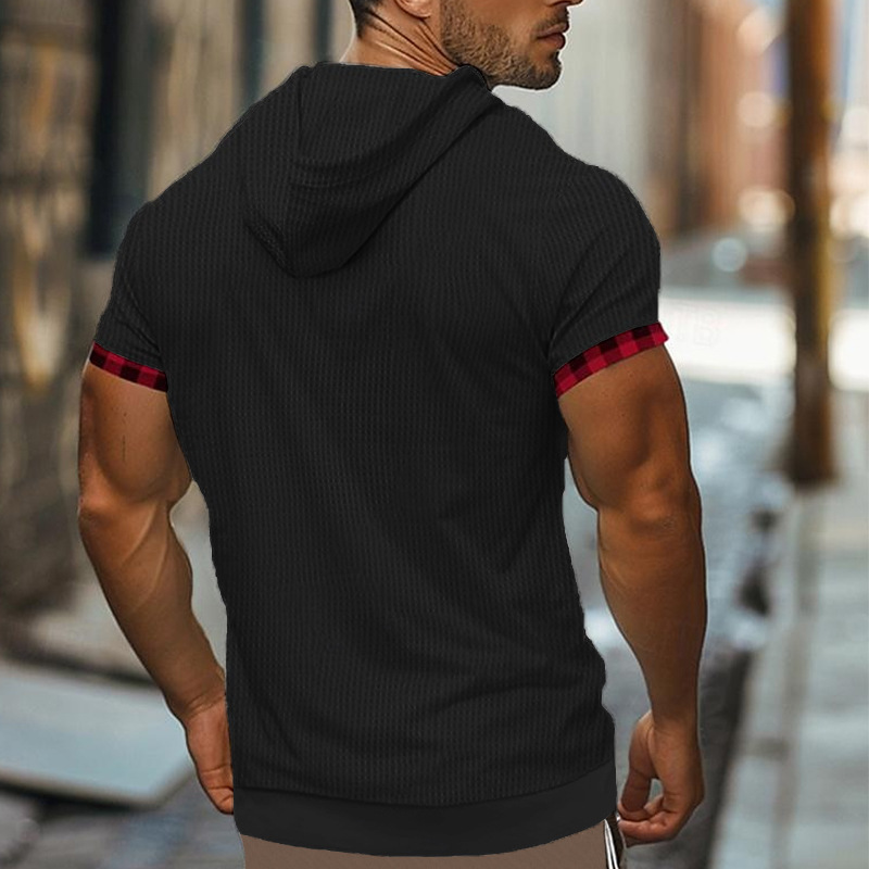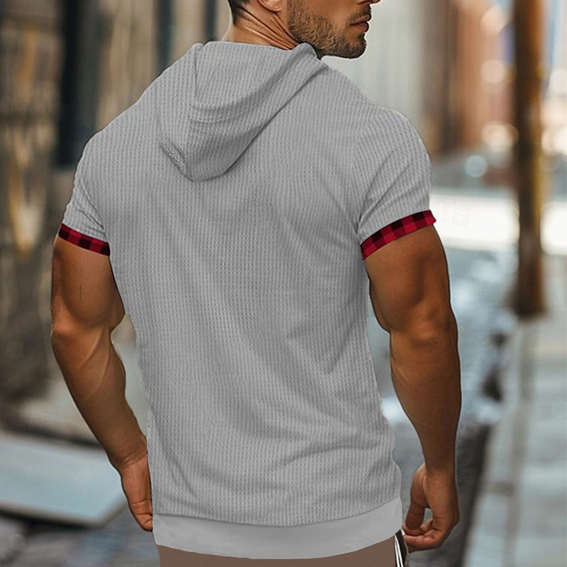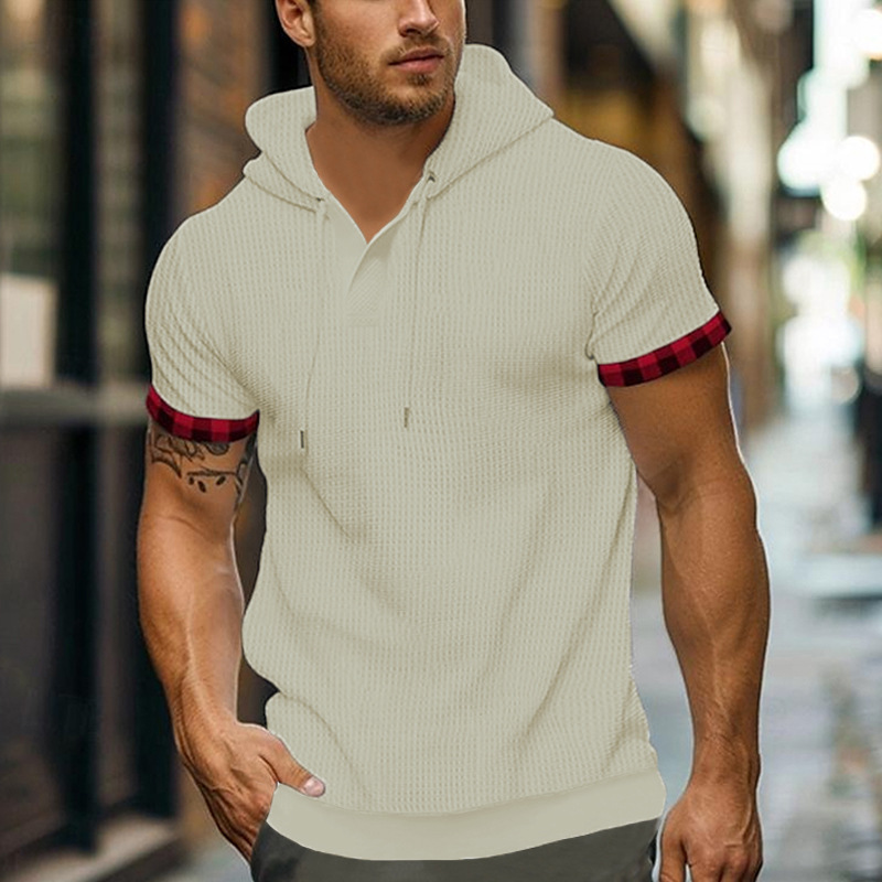 국경을 넘는 새로운 여름 캐주얼 남성 반팔 티셔츠 유럽과 미국의 최고 대외 무역 대형 와플 통기성 후드