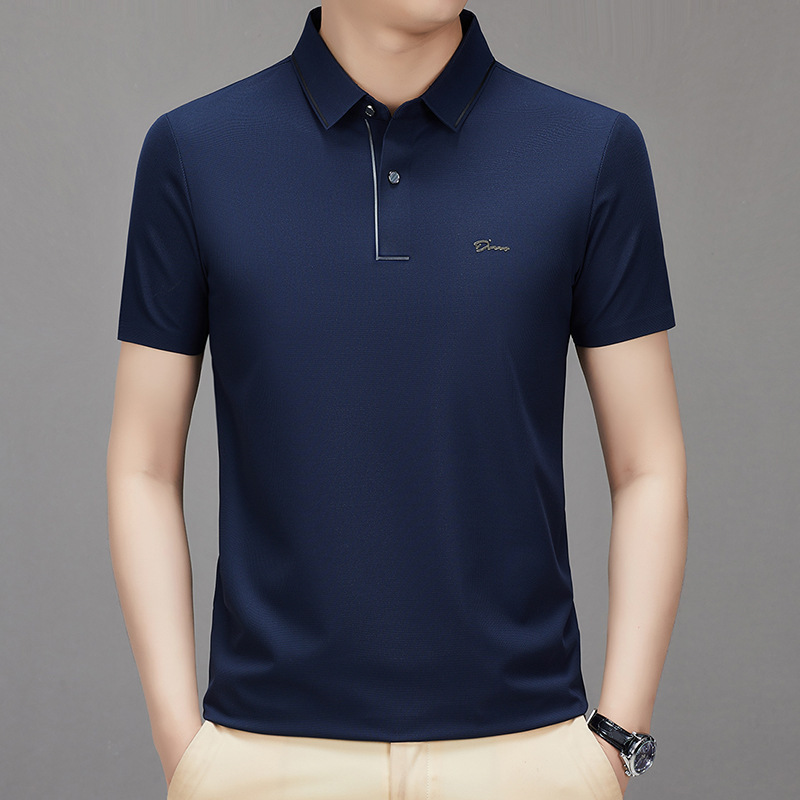 젊고 중년 아빠의 느슨한 아이스 실크 반소매 남성용 폴로 셔츠 쓰레기 원활한 반소매 여름 얇은 옷깃 티셔츠스토어 가기