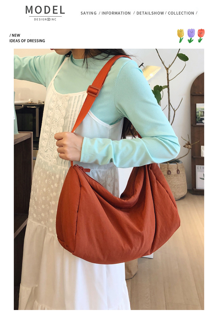 국경 2024 새로운 U 스타일 여성 가방 나일론 가방 간단한 대용량 어깨 크로스 바디 여행 가방