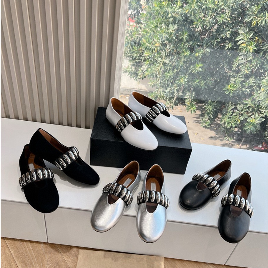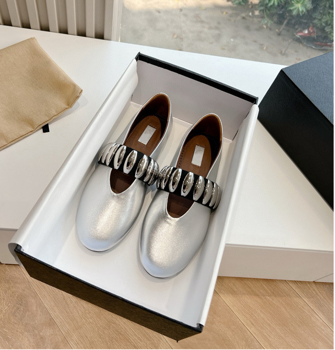 2024 봄 메탈 버클 탄성 밴드 발레 슈즈 여성용 레트로 가죽 플랫 슈즈 슬립온 메리제인 슈즈 다용도