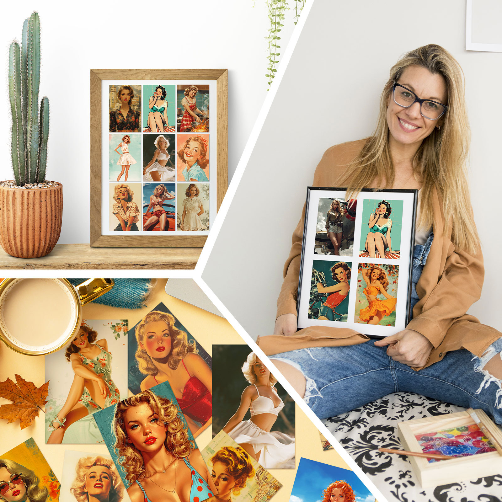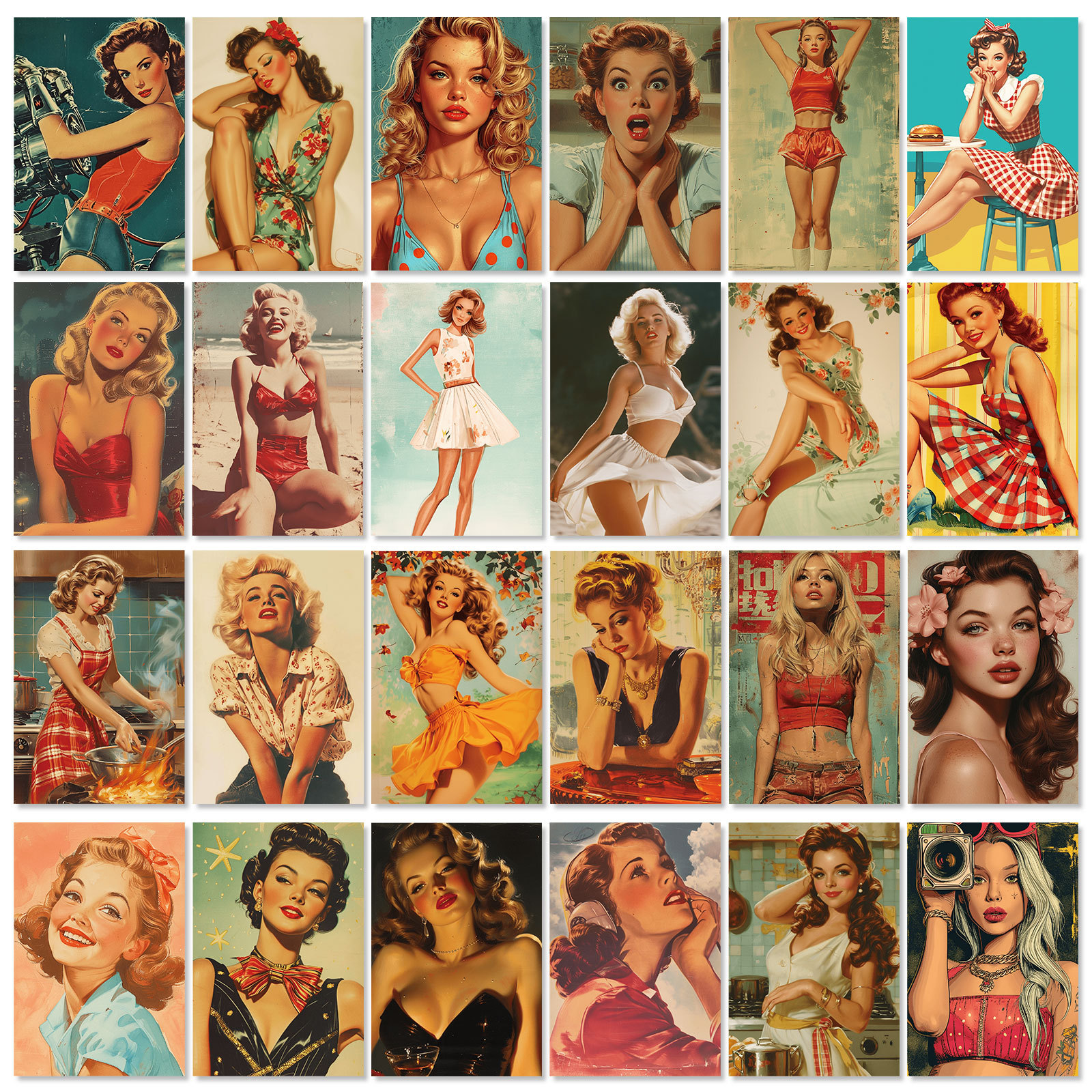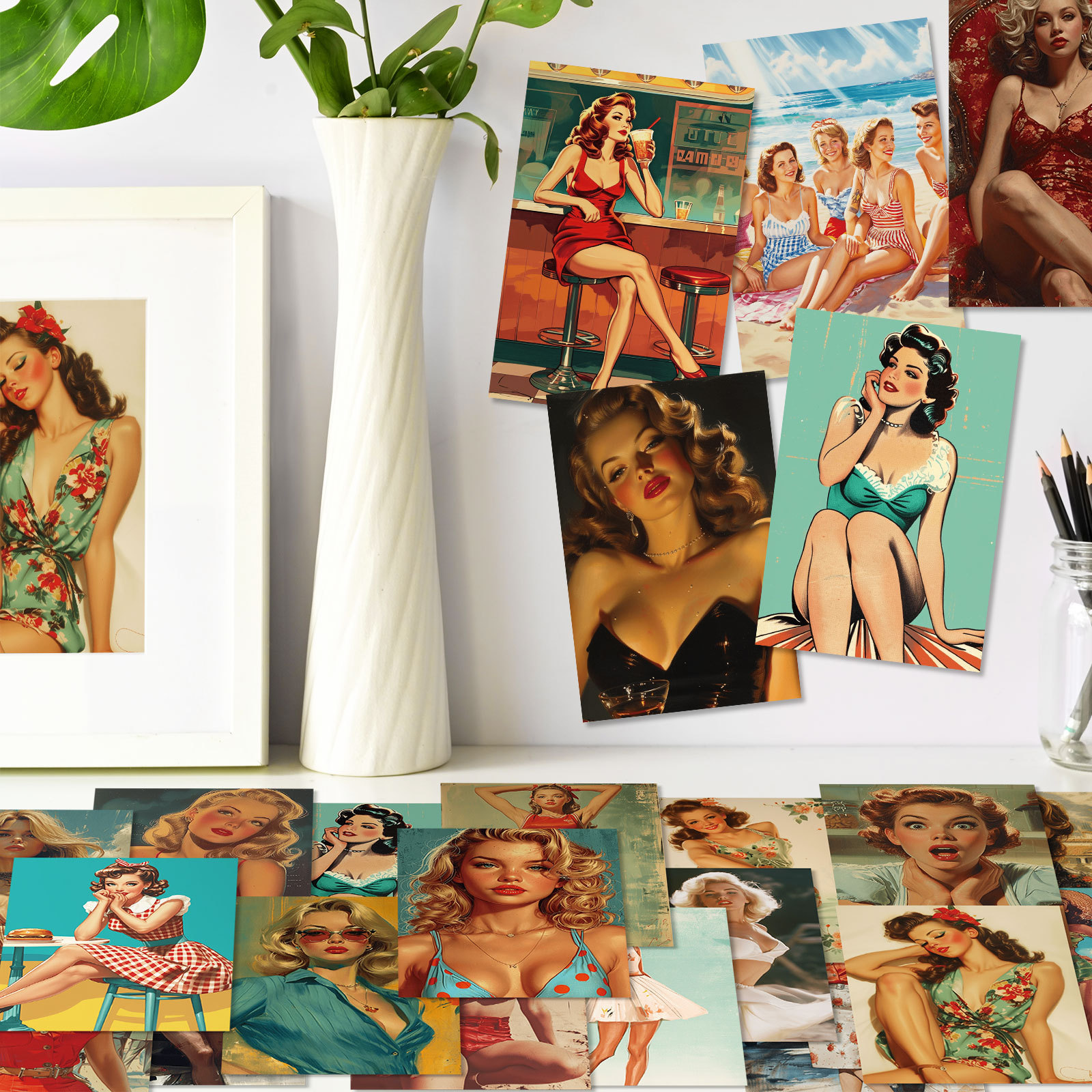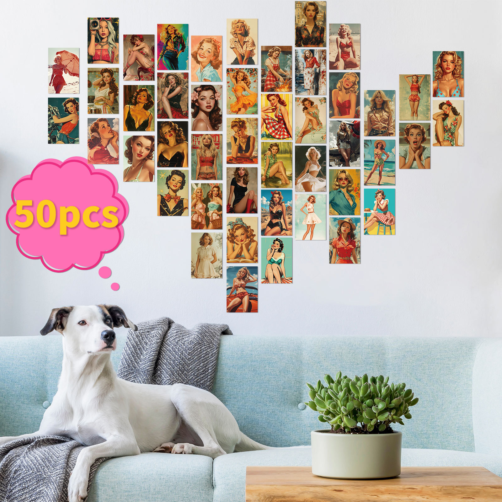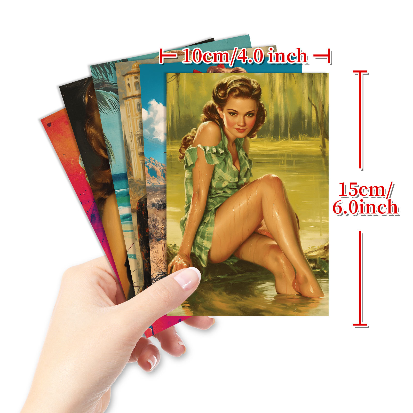 국경 새 50 복고풍 엽서 복고풍 소녀 벽 장식 카드 컬러 미적 포스터 장식 벽 그림스토어 가기