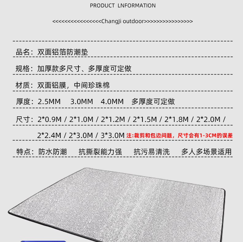 야외 습기 방지 매트 휴대용 캠핑 매트 비치 매트 두꺼운 양면 알루미늄 필름 캠핑 점심 휴식 슬리핑 매트