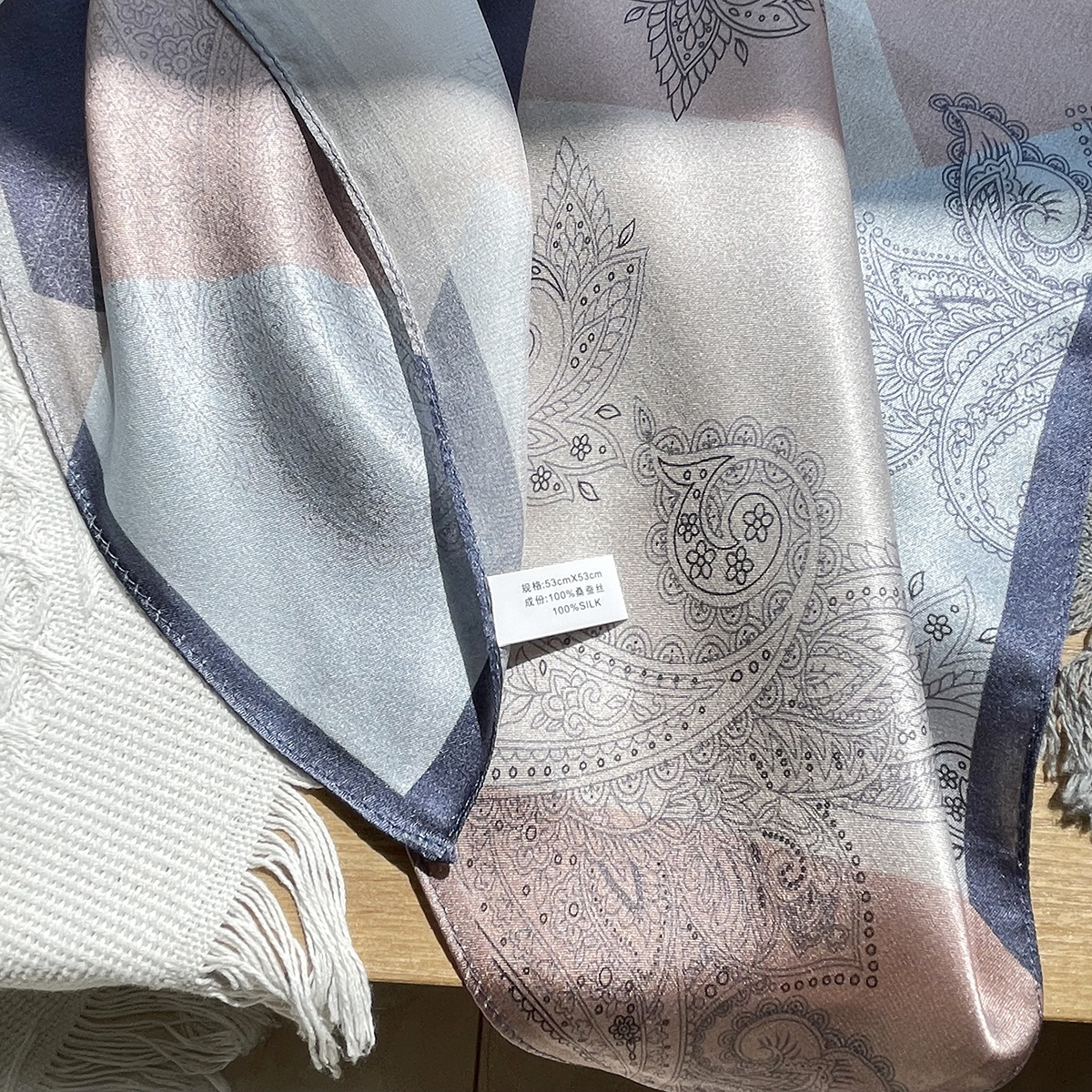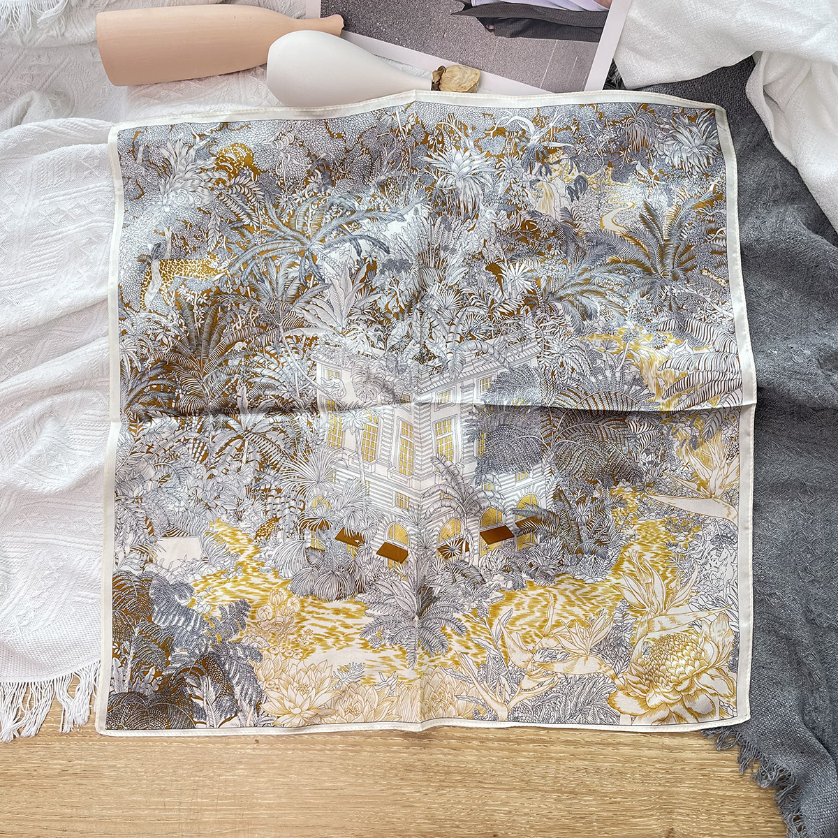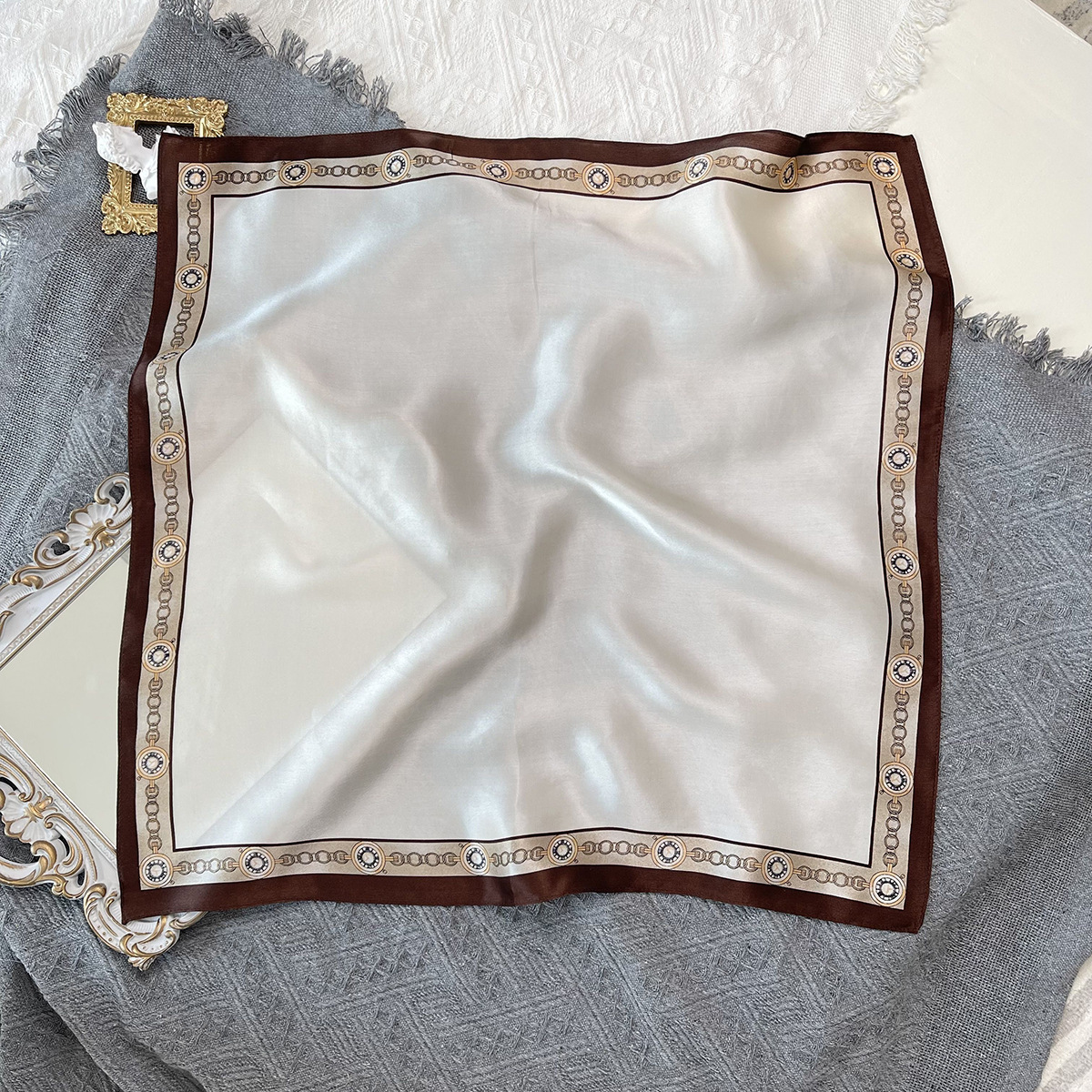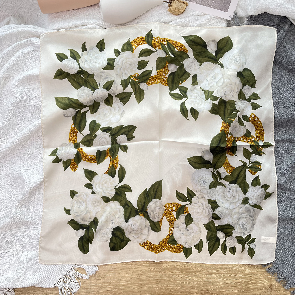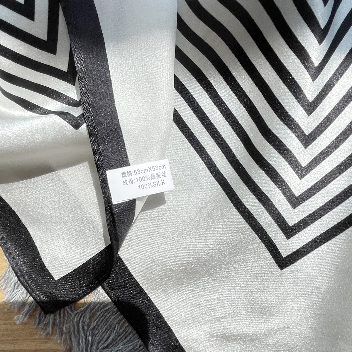 100% 실크 스카프 봄 새로운 검은 누에 실크 53cm 작은 광장 스카프 고급 감각 흰색 스카프스토어 가기
