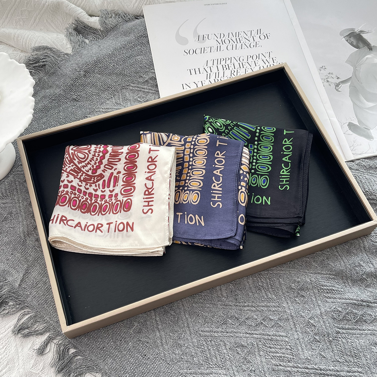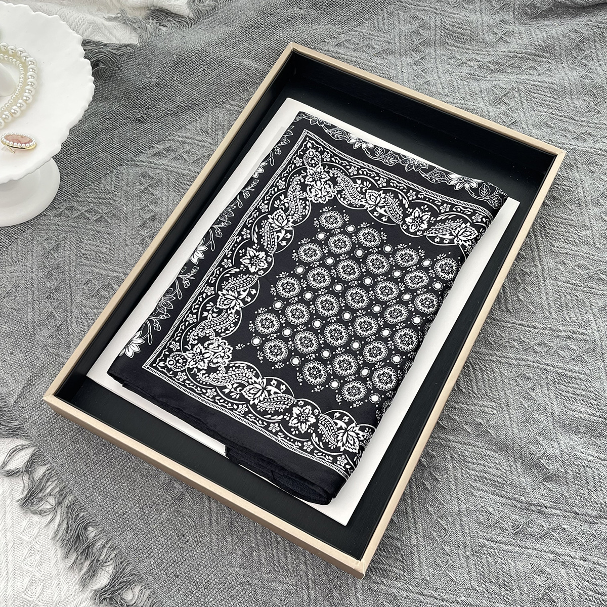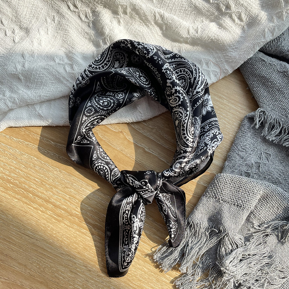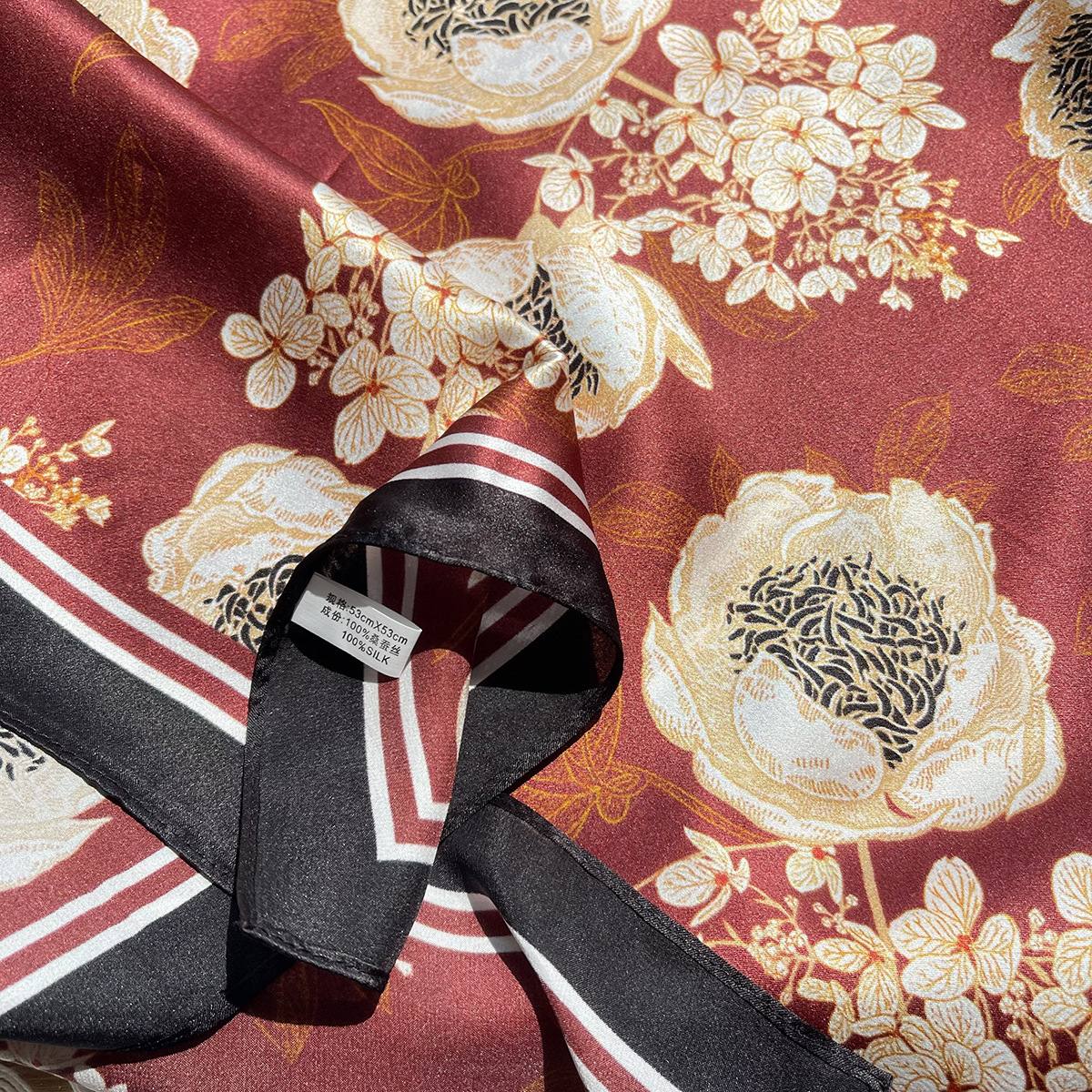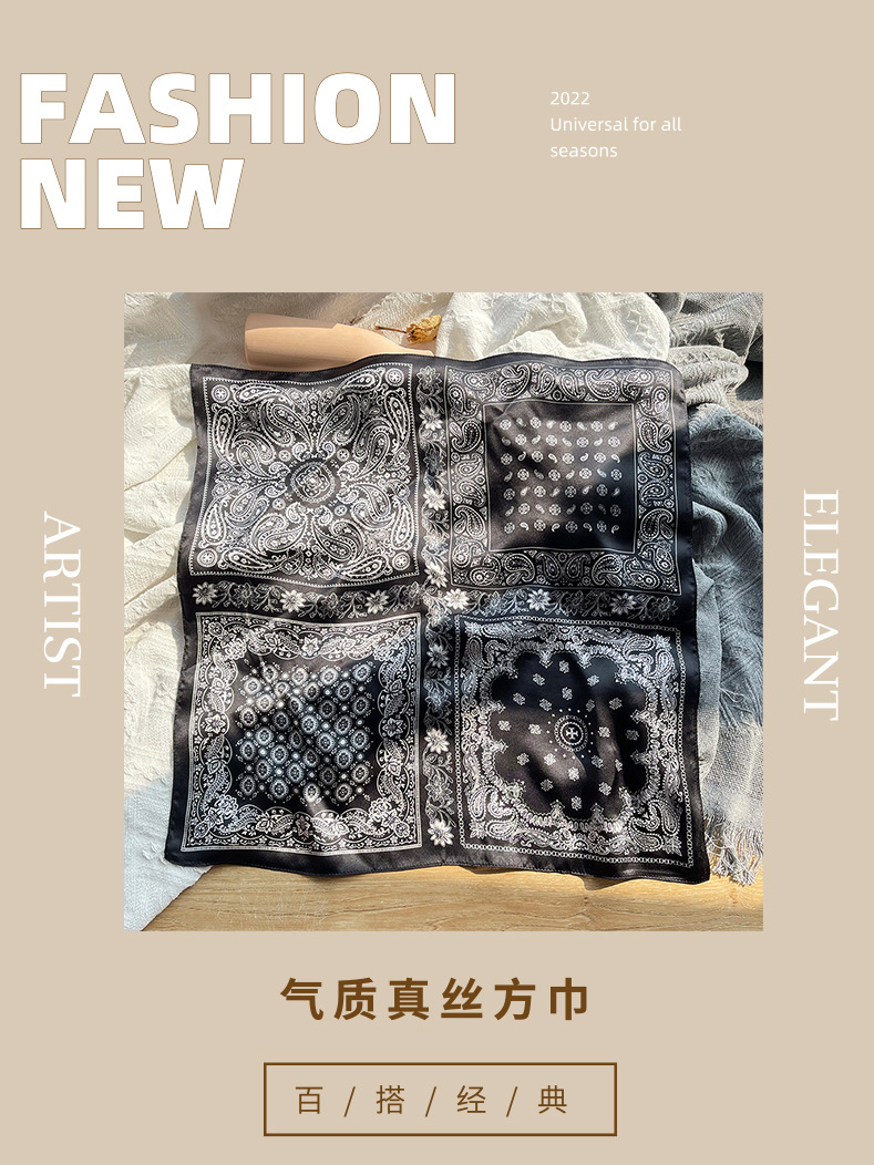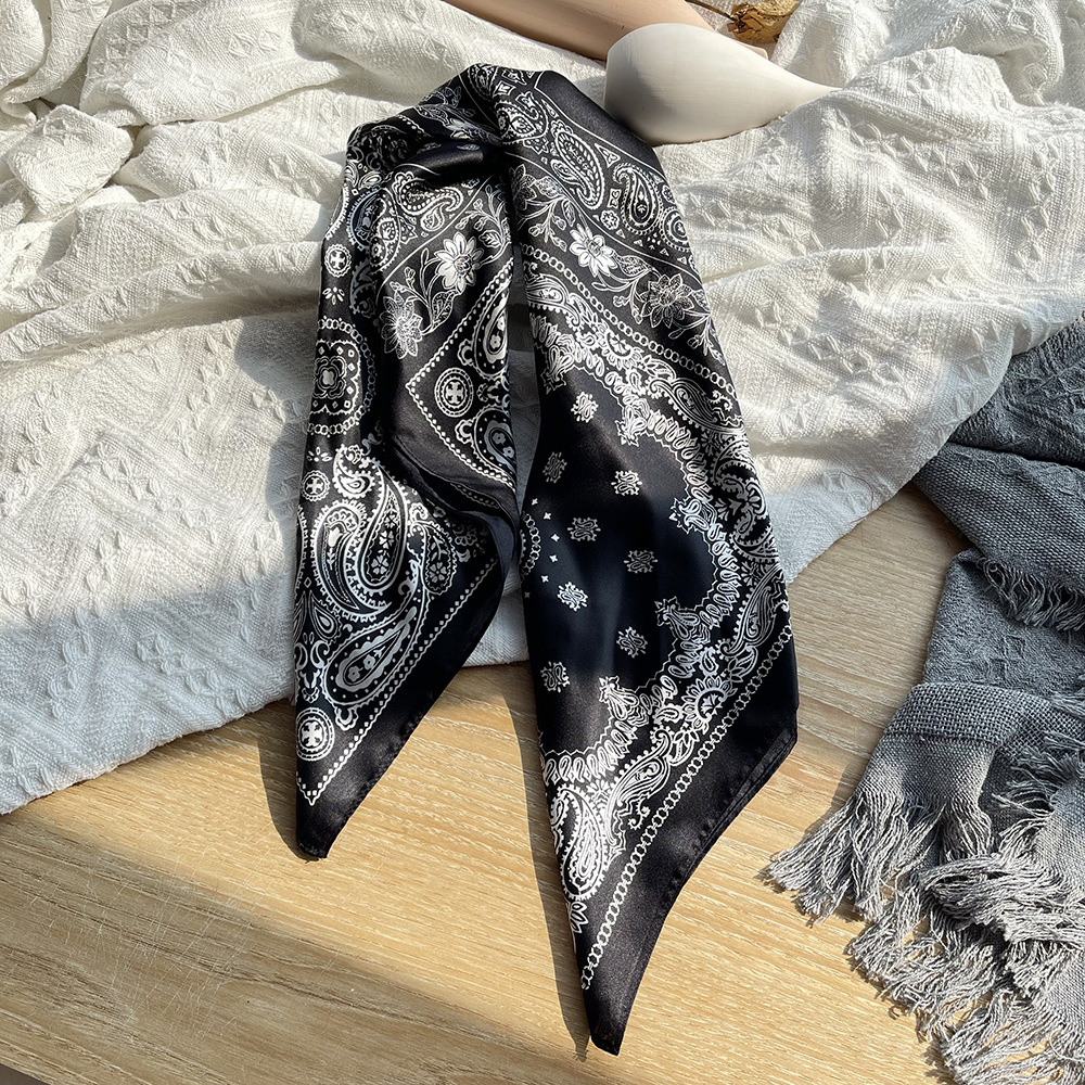 100% 실크 스카프 봄 새로운 검은 누에 실크 53cm 작은 광장 스카프 고급 감각 흰색 스카프스토어 가기