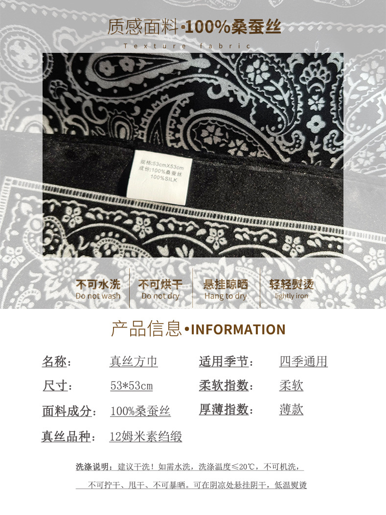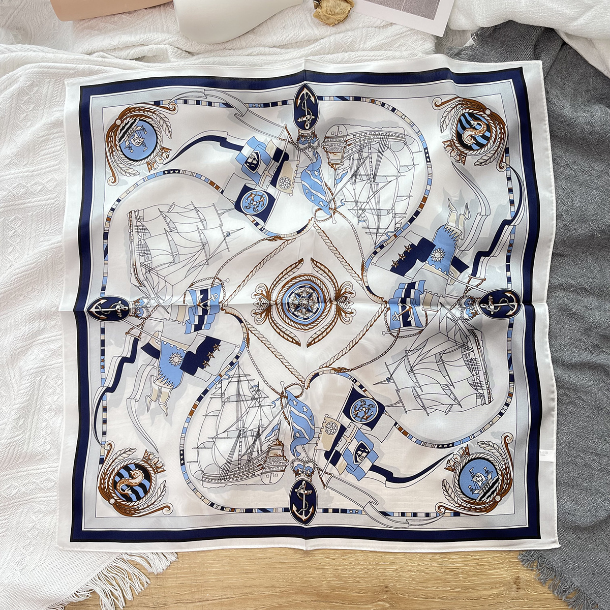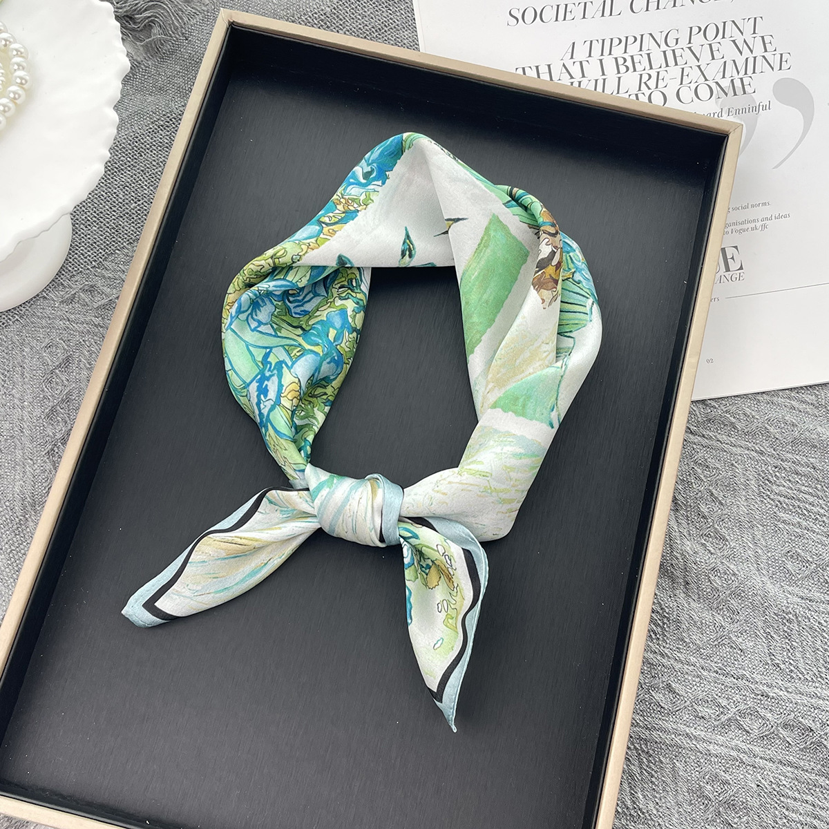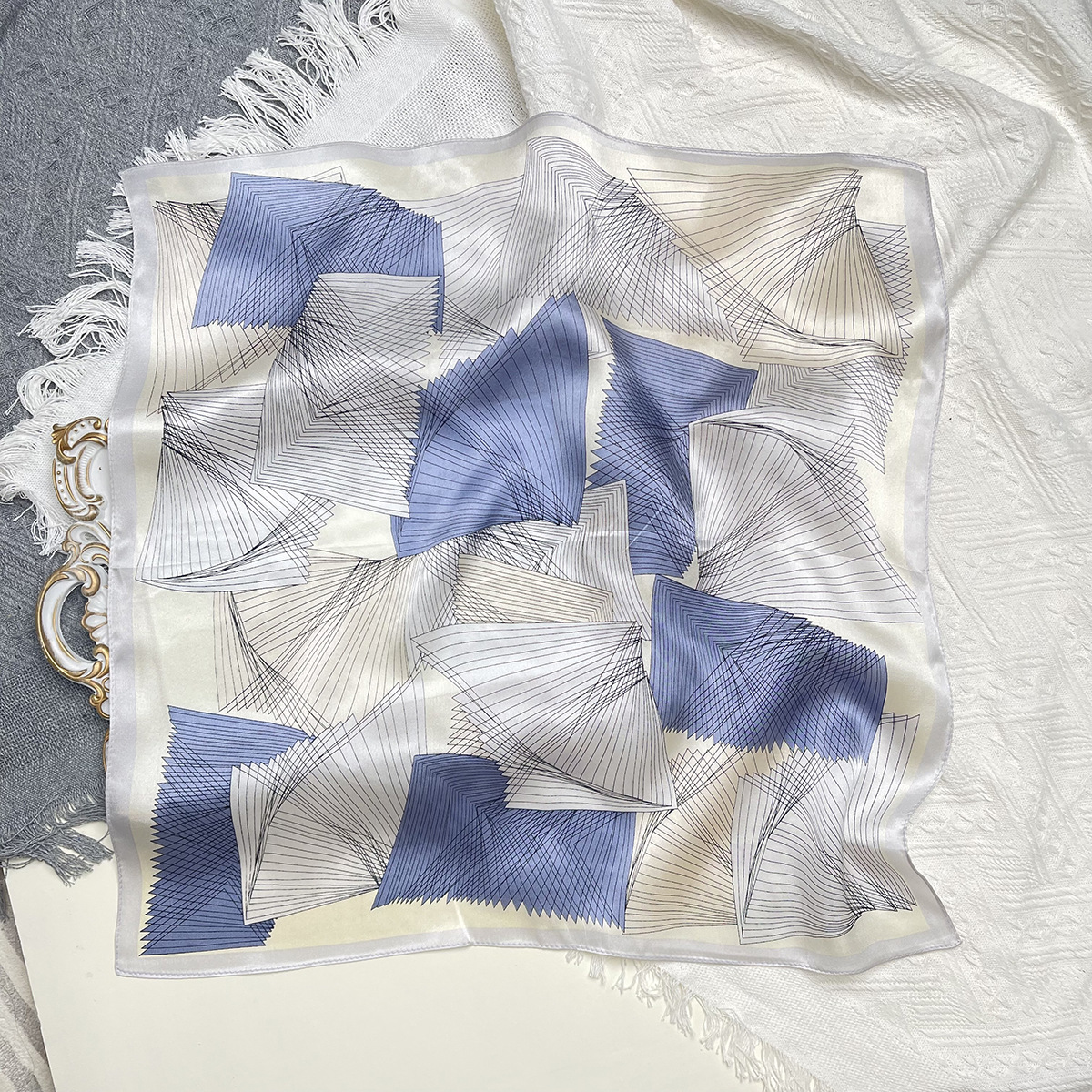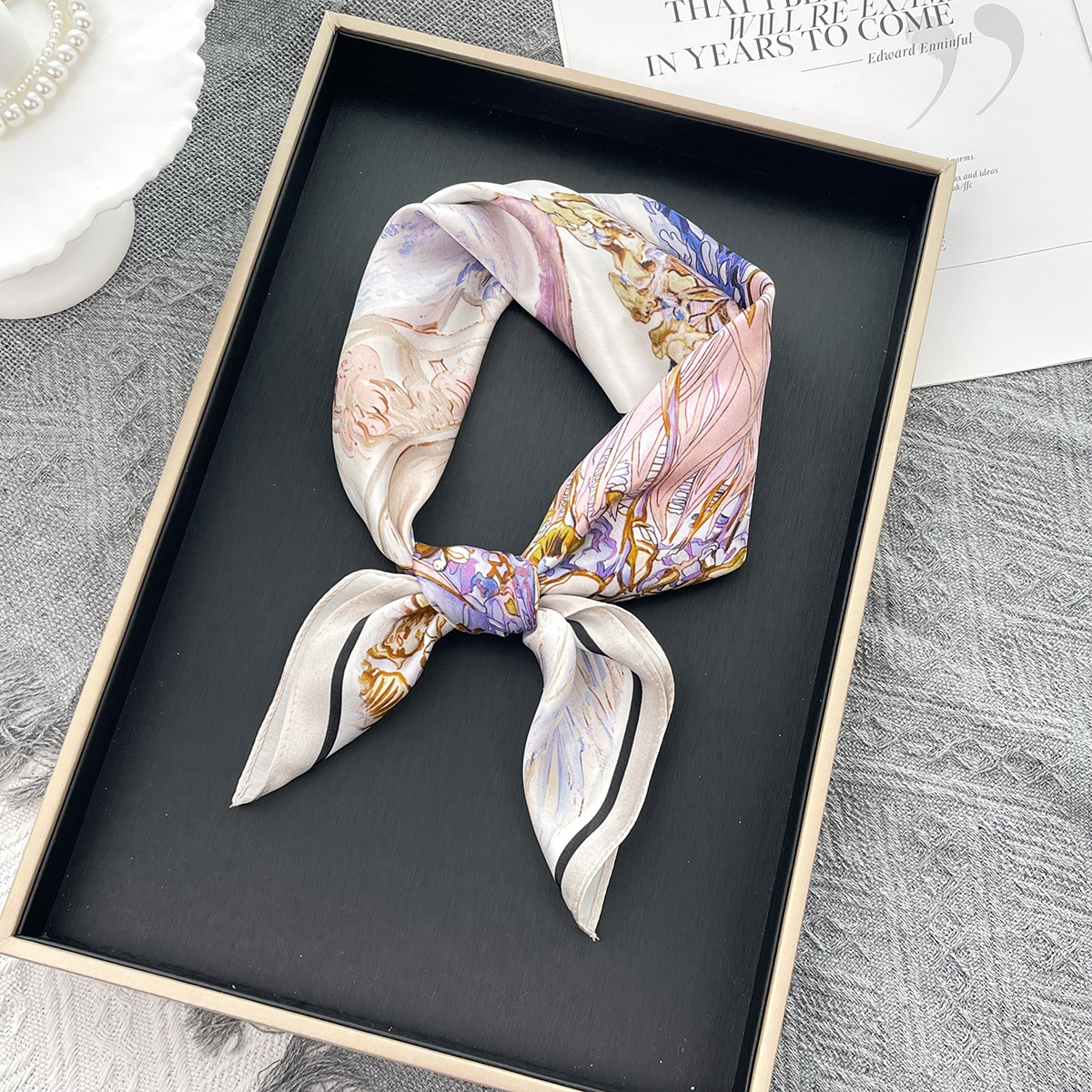 100% 실크 스카프 봄 새로운 검은 누에 실크 53cm 작은 광장 스카프 고급 감각 흰색 스카프스토어 가기