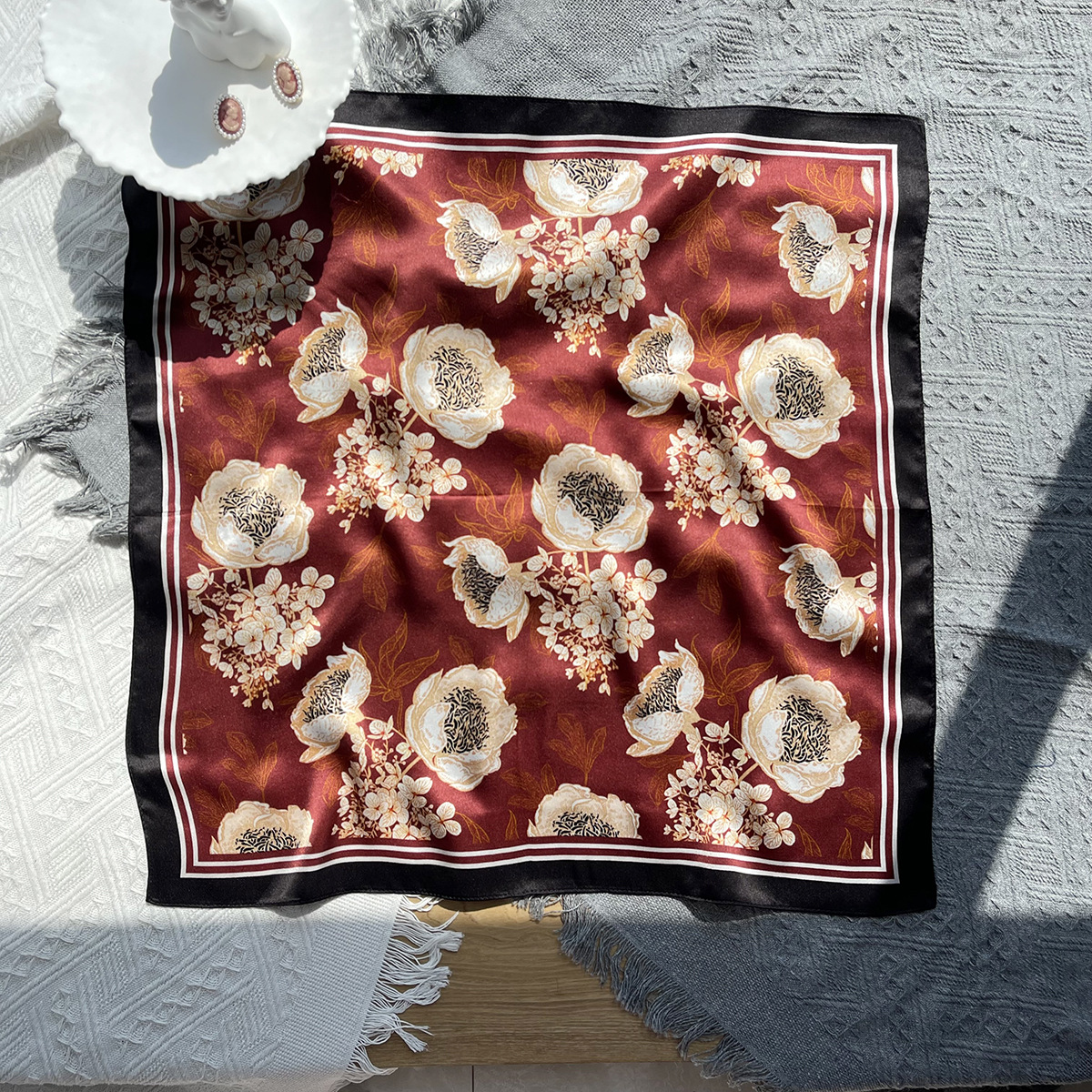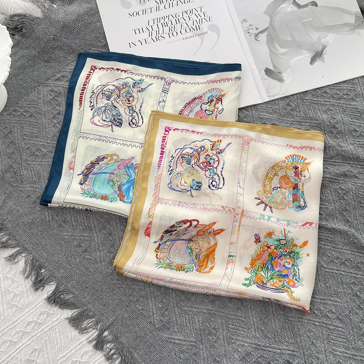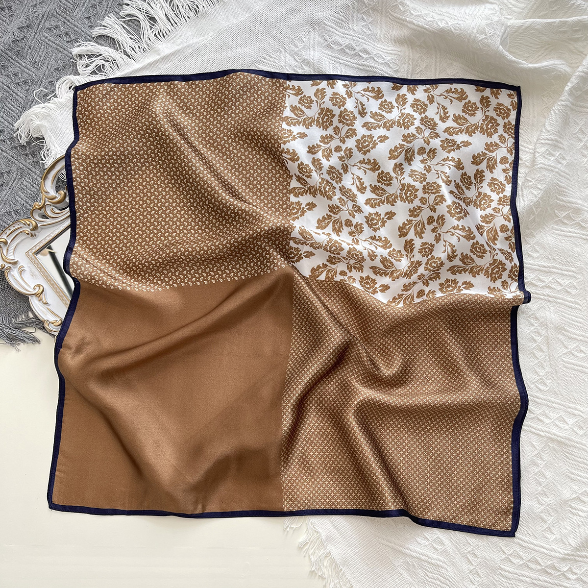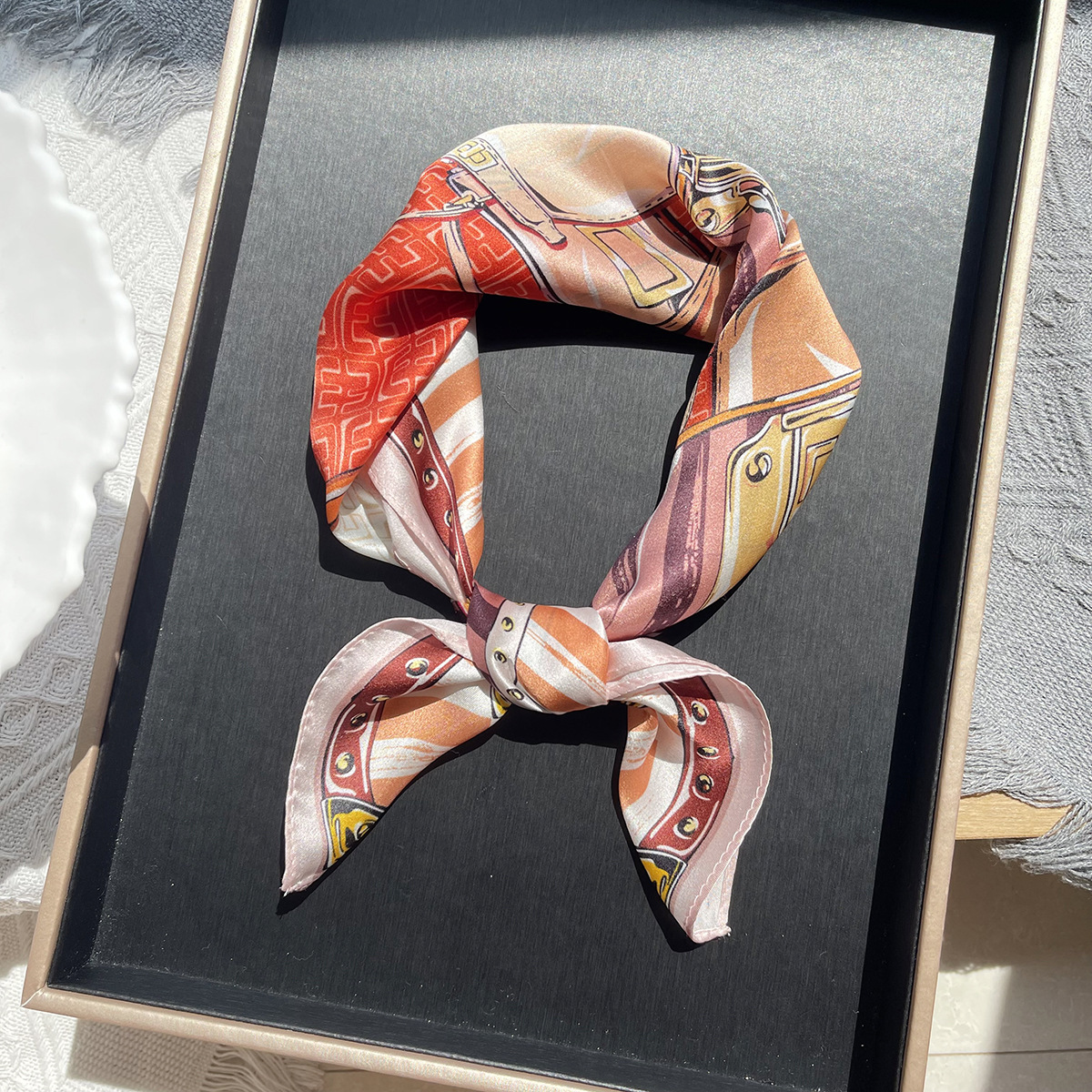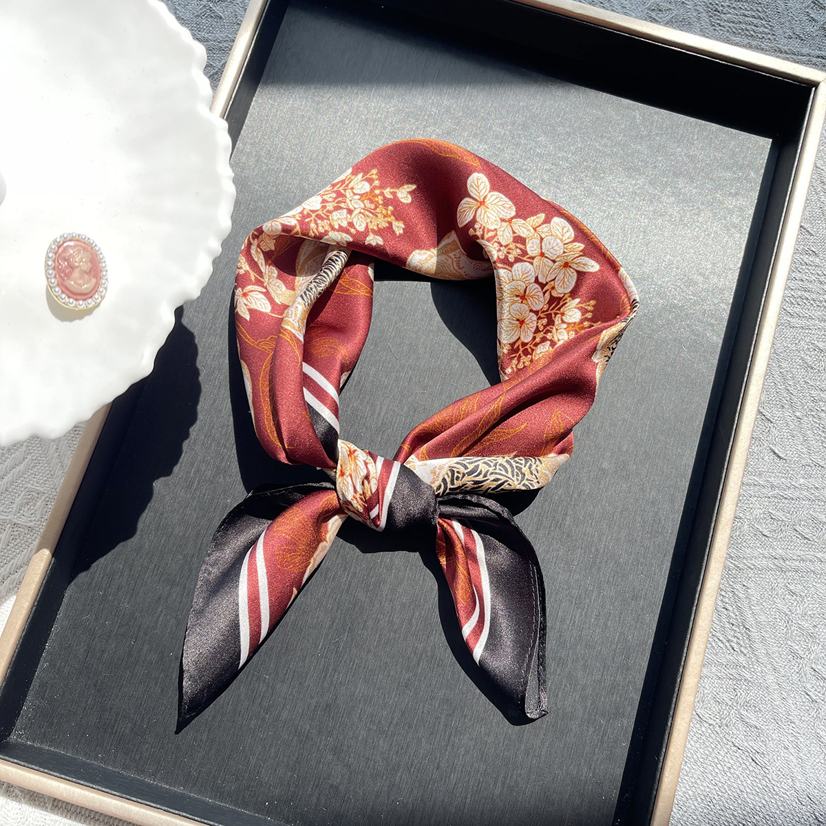100% 실크 스카프 봄 새로운 검은 누에 실크 53cm 작은 광장 스카프 고급 감각 흰색 스카프스토어 가기