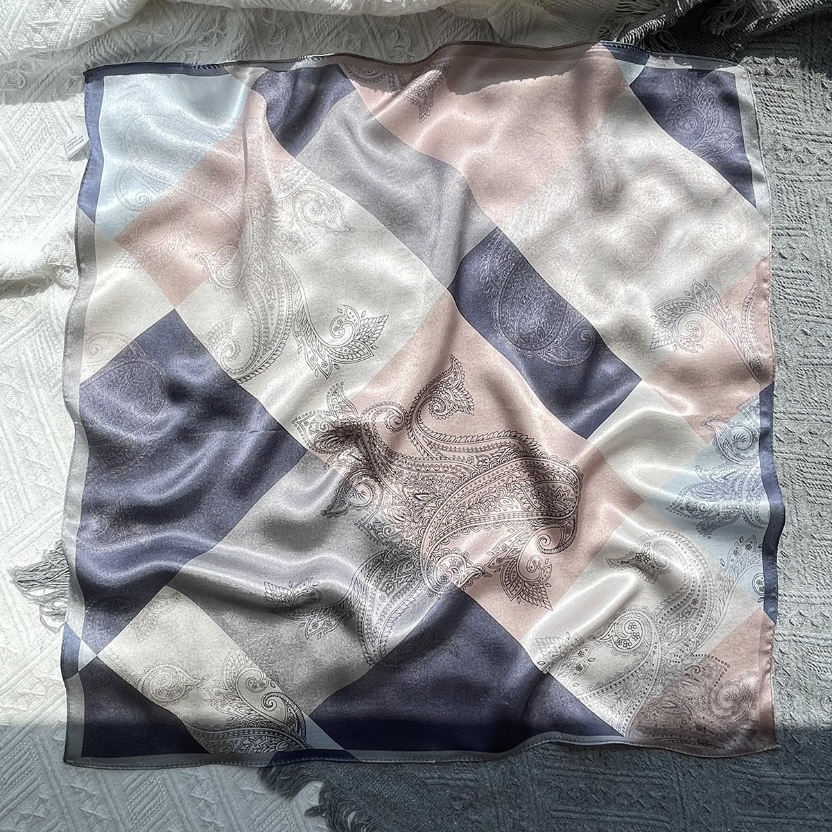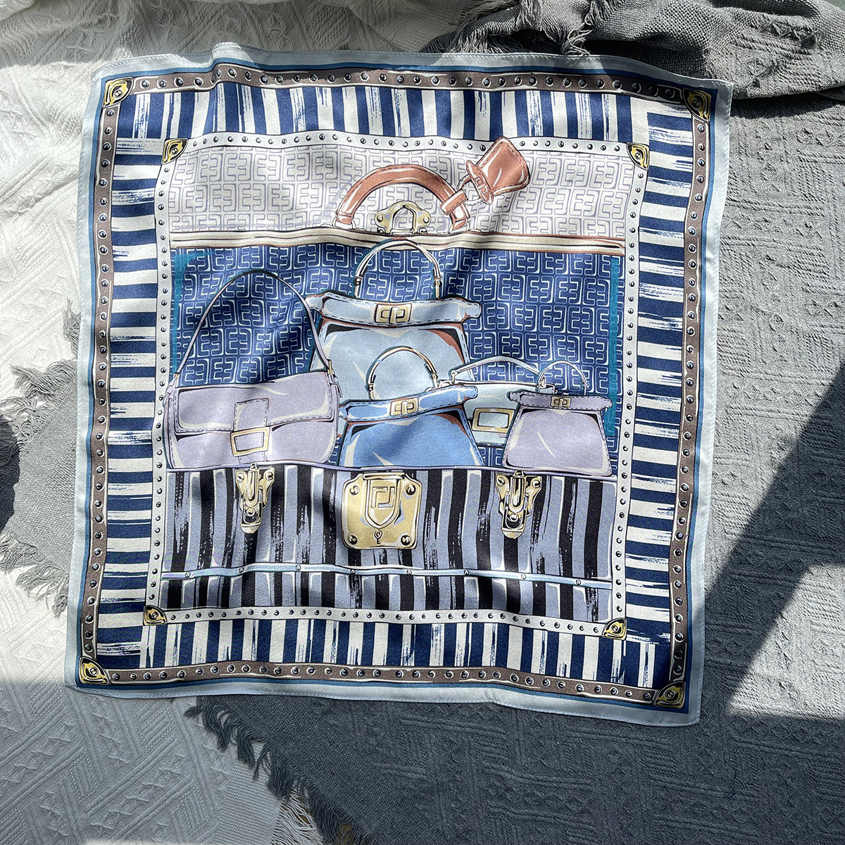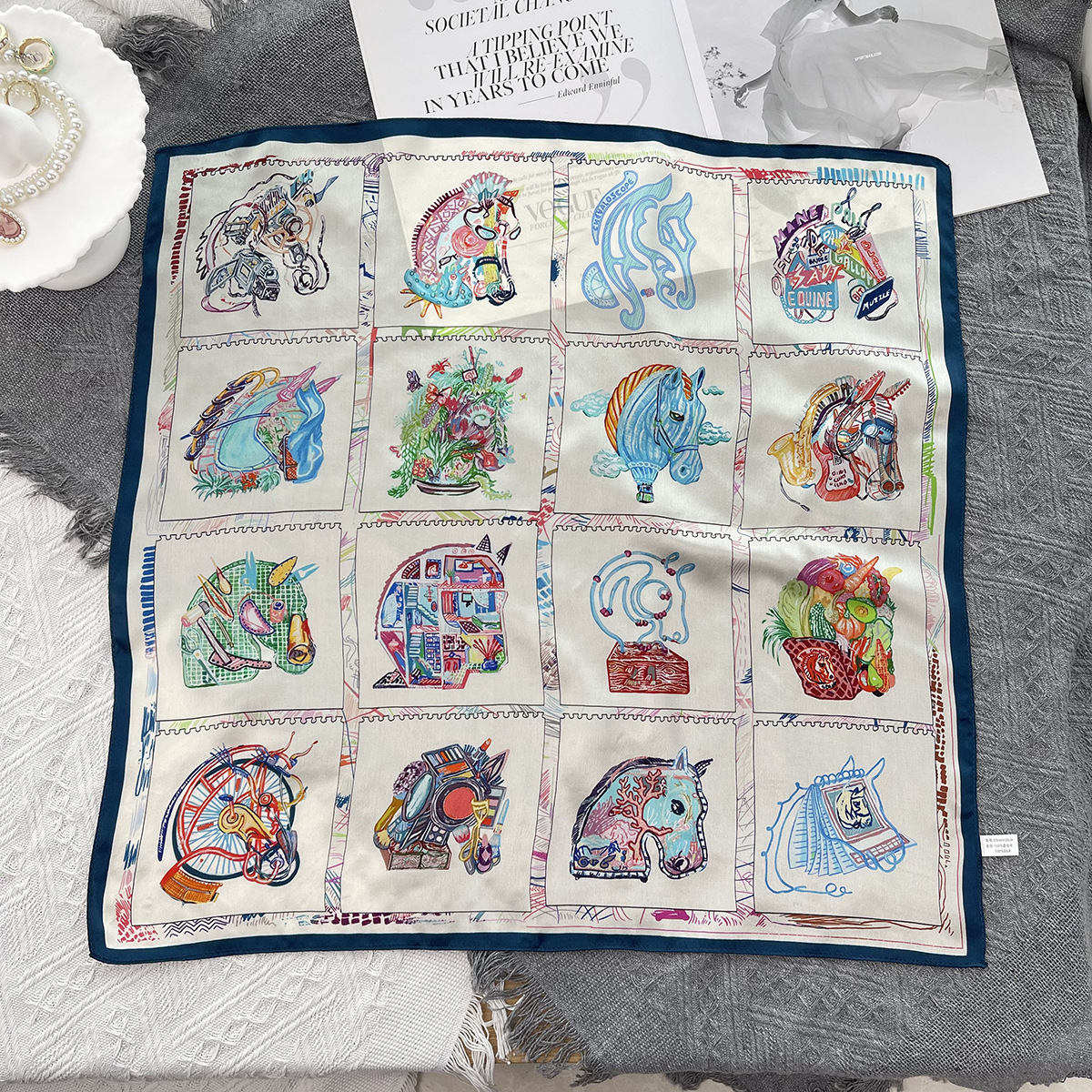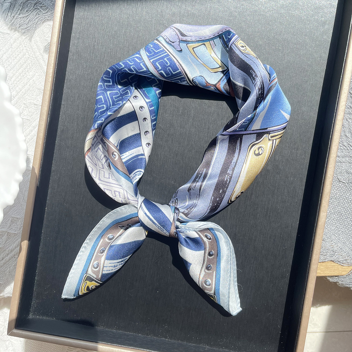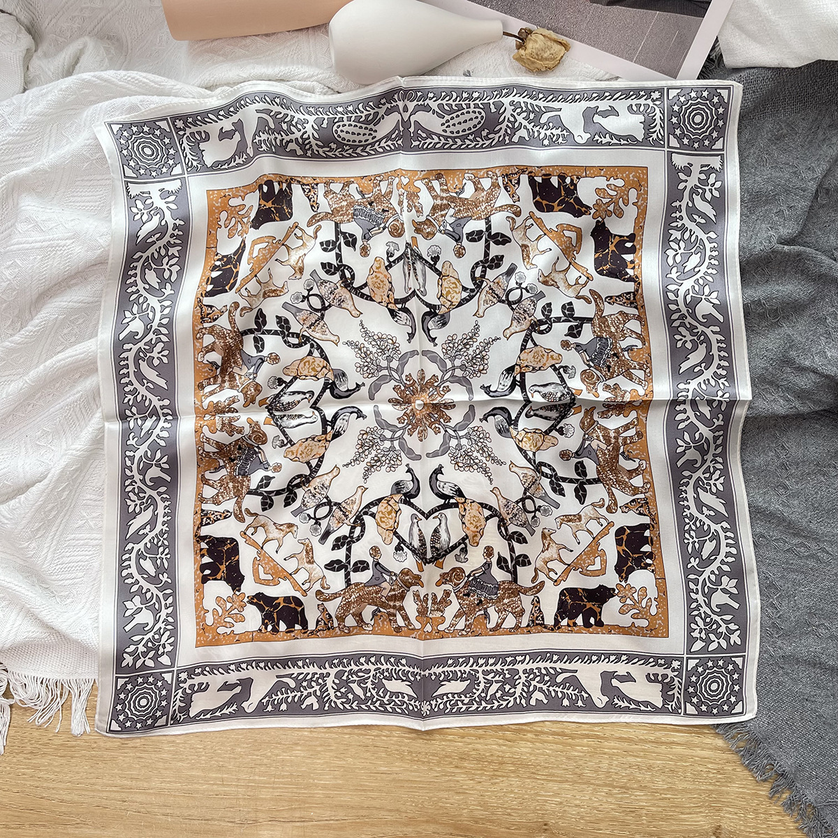 100% 실크 스카프 봄 새로운 검은 누에 실크 53cm 작은 광장 스카프 고급 감각 흰색 스카프스토어 가기